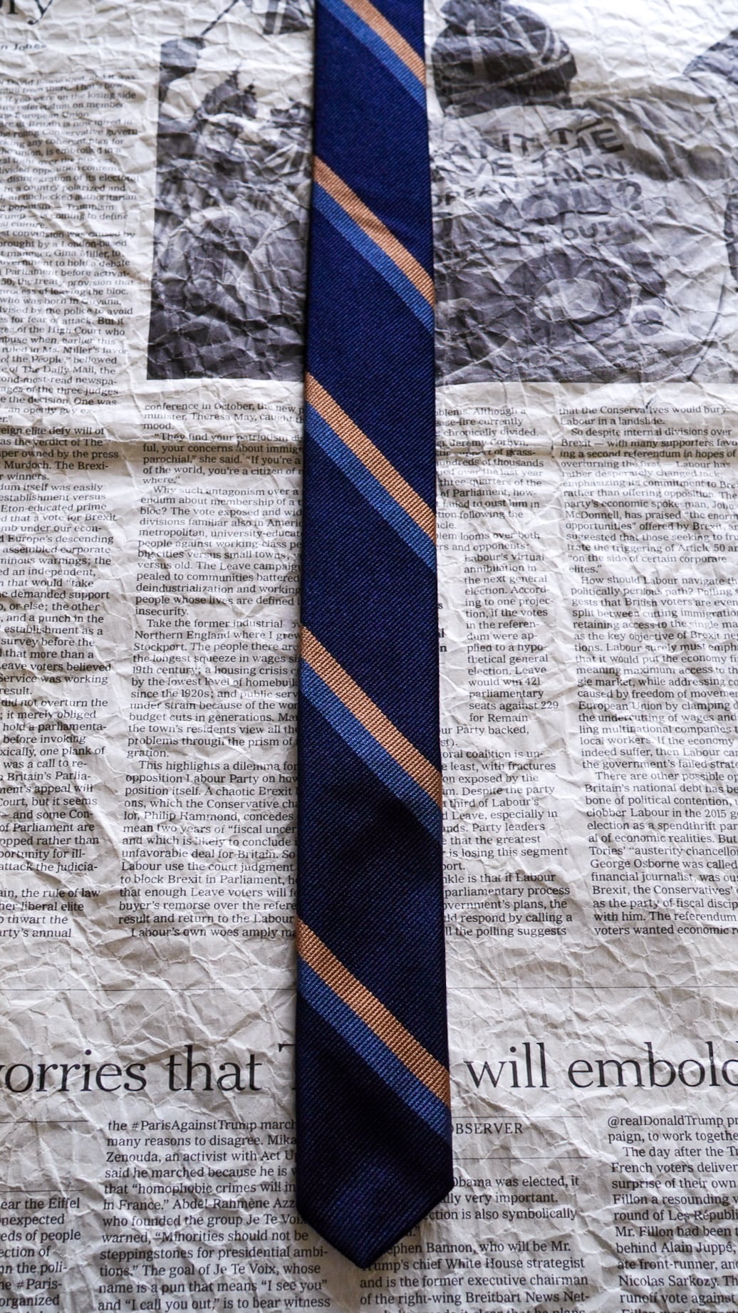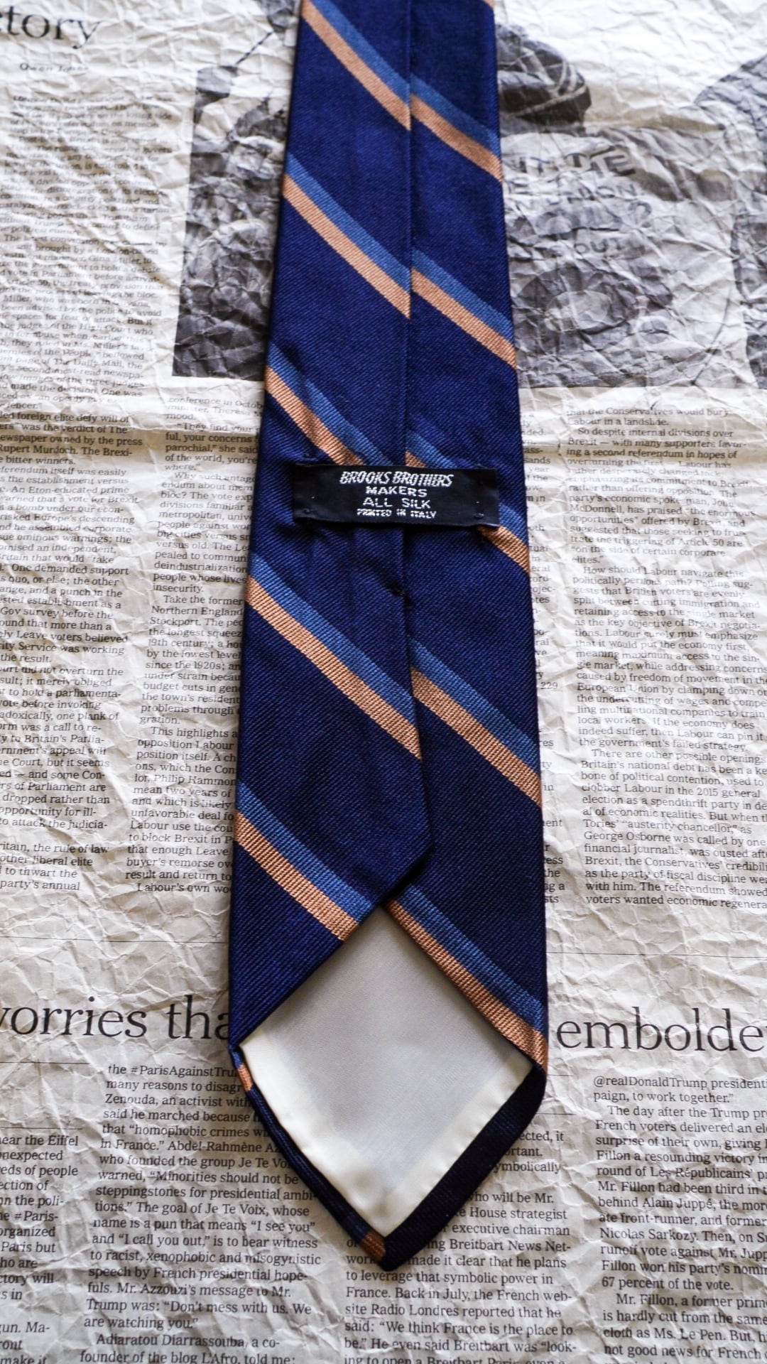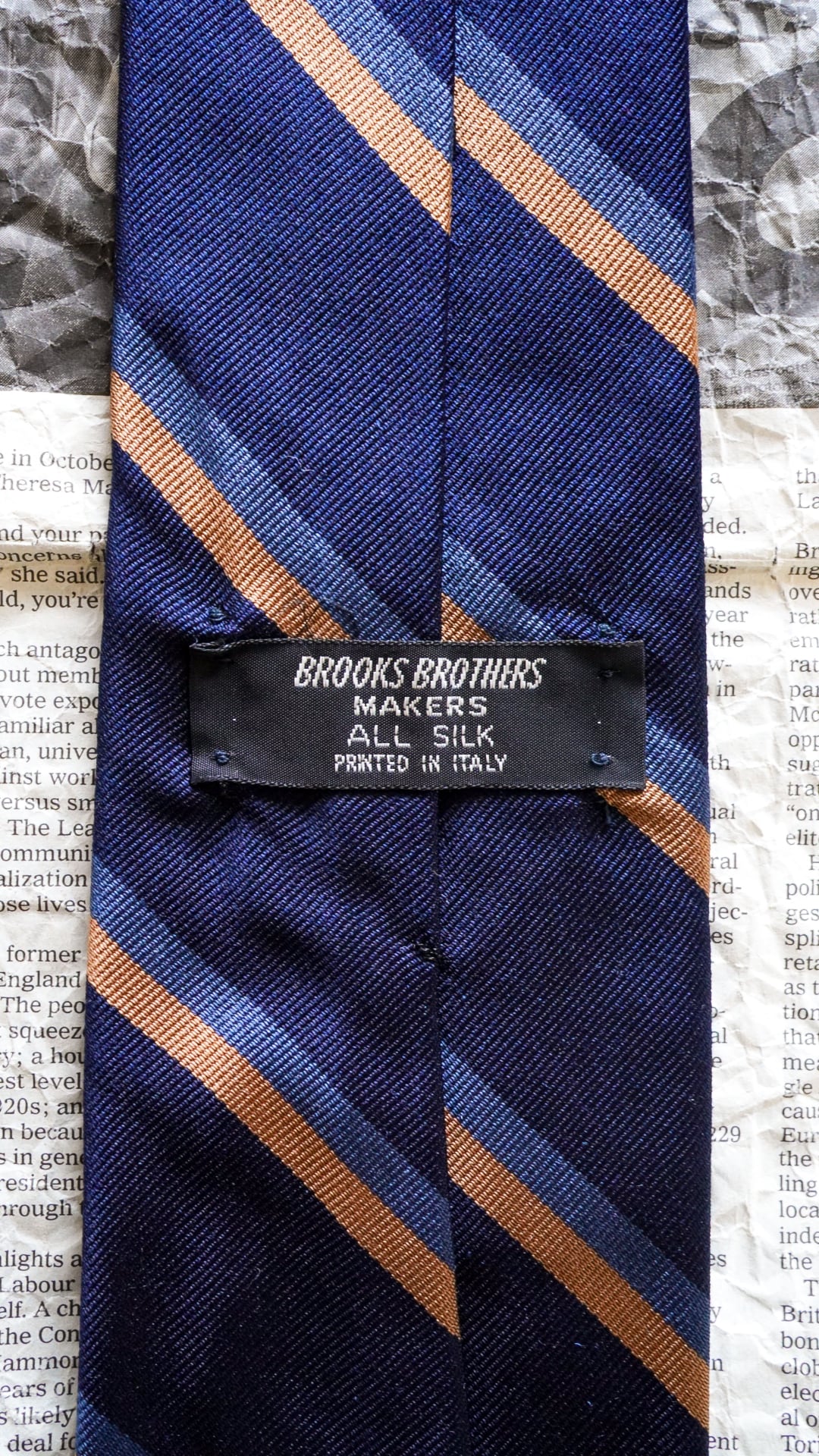 BROOKS BROTHERS Rep Tie " Black Tag " (Navy × Mid Blue × Camel)