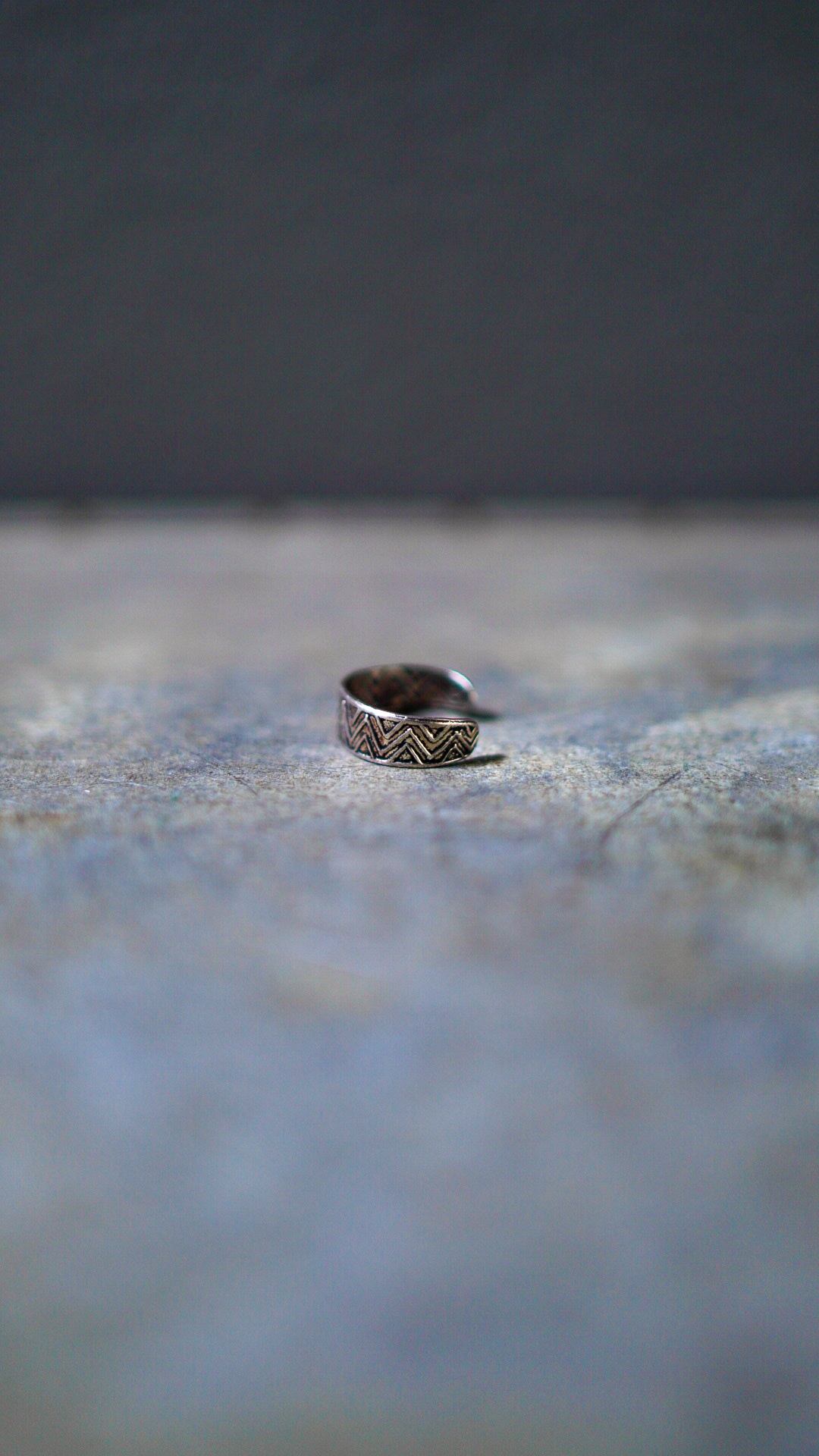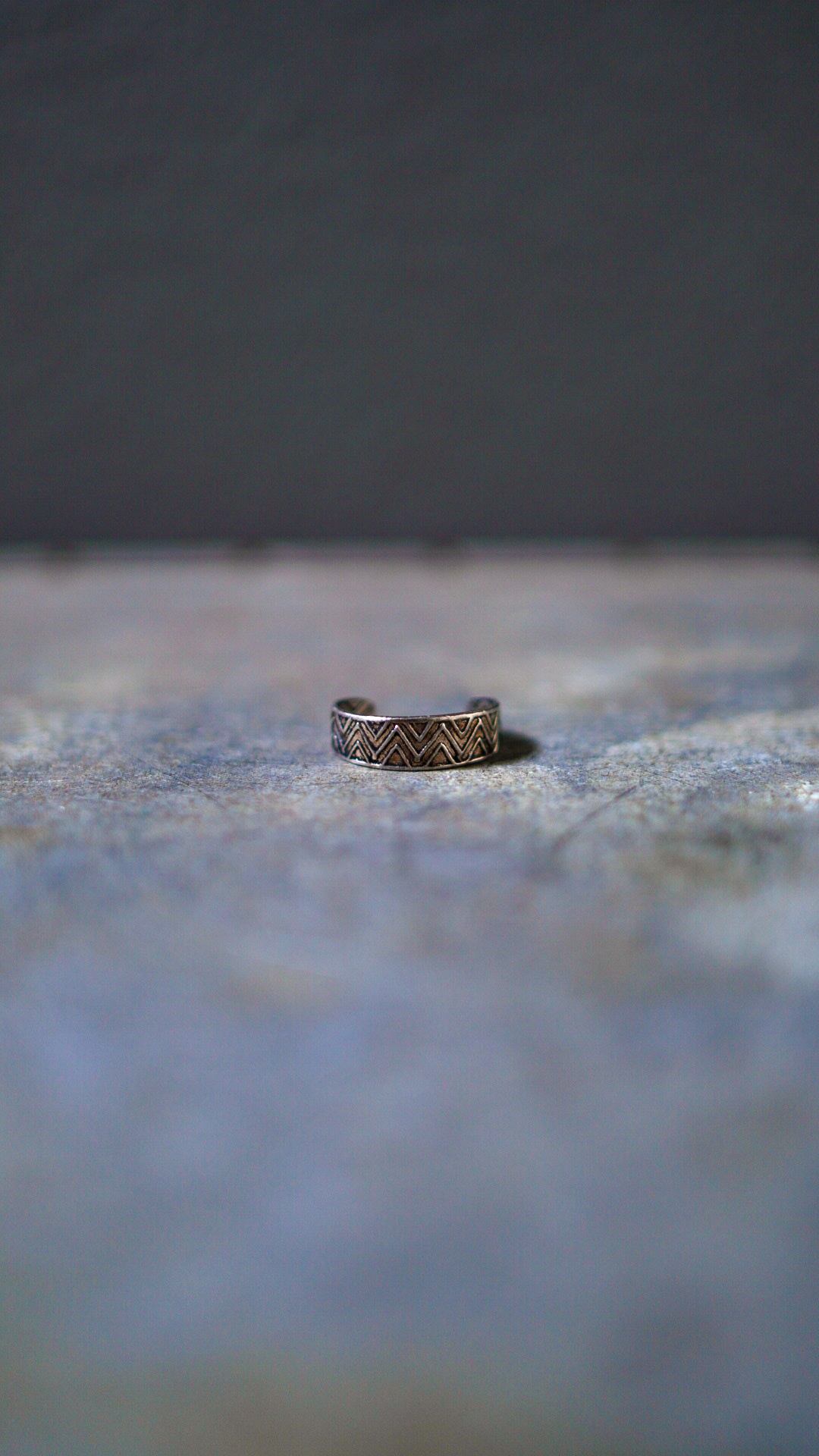 リング全体に施されたジグザグパターンが印象的なヴィンテージトゥーリング。
