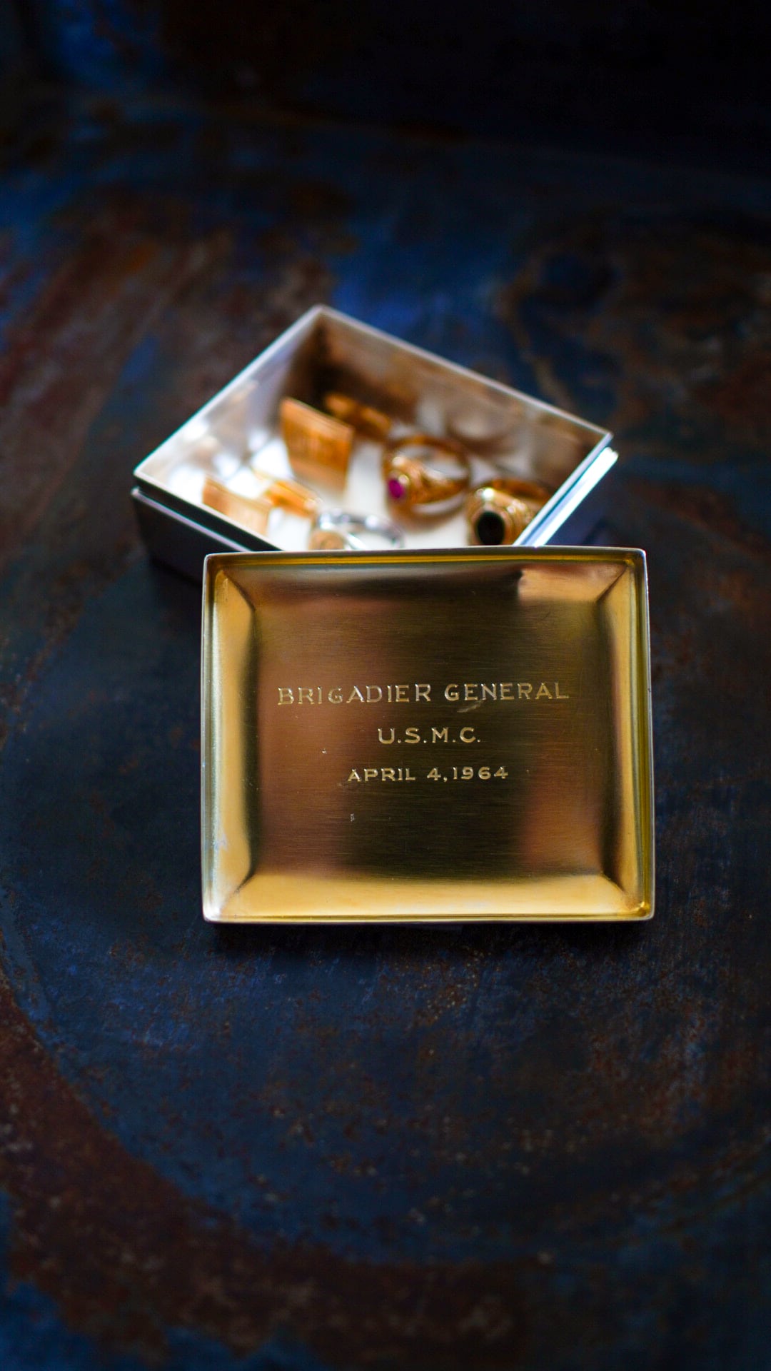 これは、1964年4月4日、ある人物がアメリカ海兵隊の准将に昇進したことを記念して、彼の名付け親(ゴッドファーザー)であり、精神的な支えでもあった人物から贈られた記念品であったことが窺い知れます。