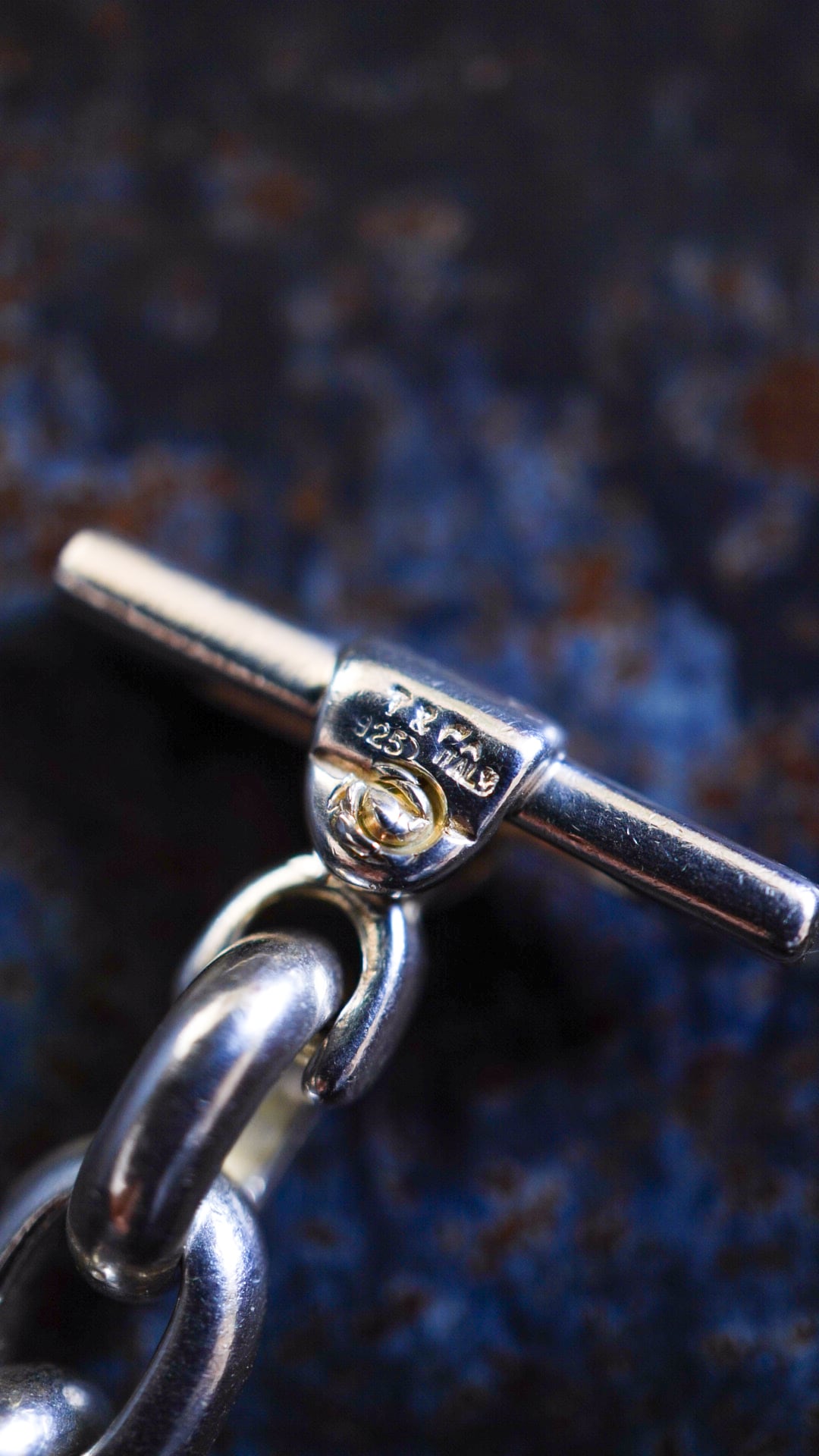 重厚感のあるオーバル型のシルバーチェーンに、スター(星)とトグルで構成されたティファニー製のヴィンテージブレスレット。