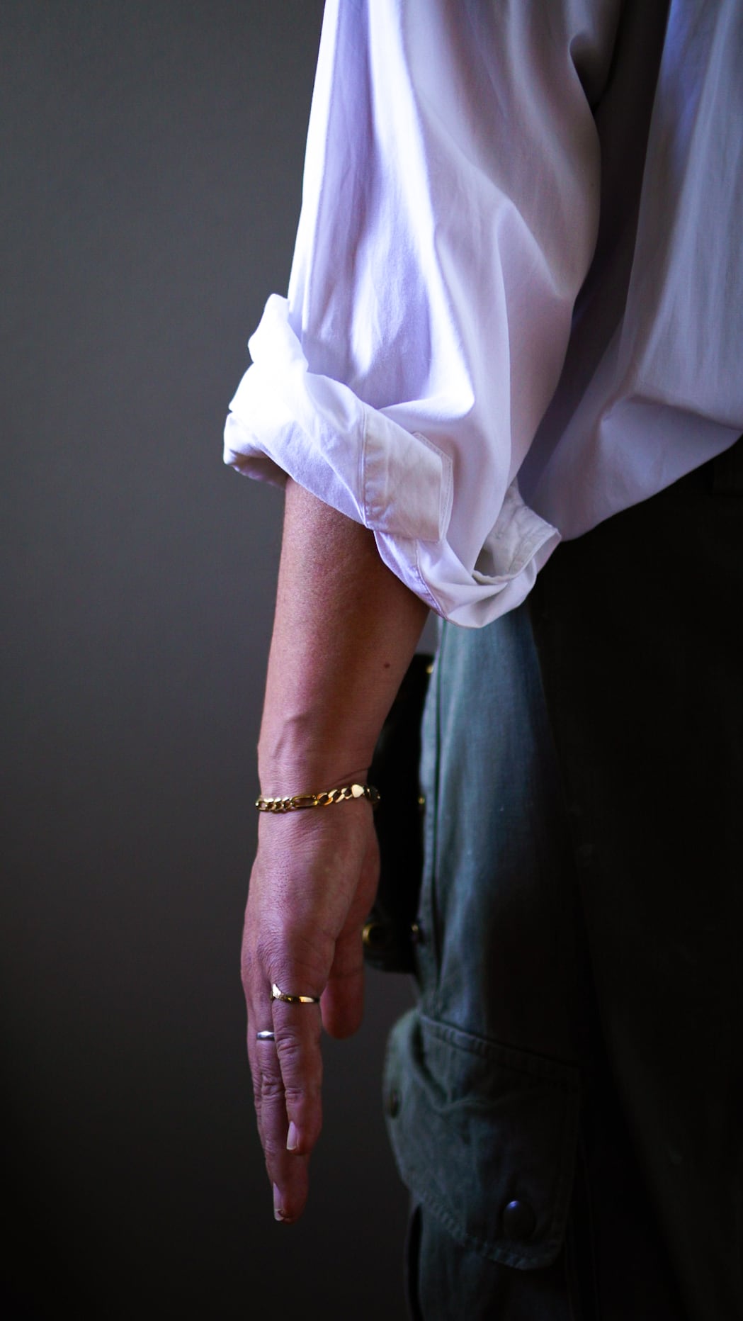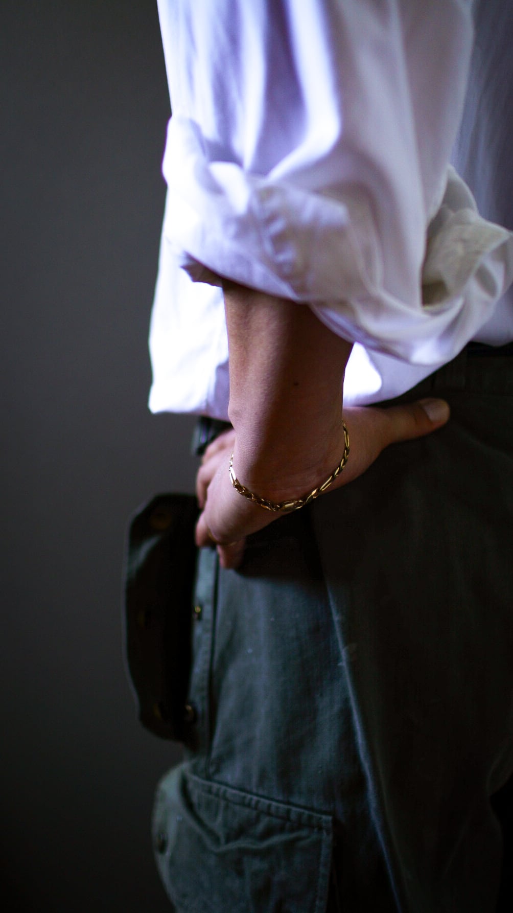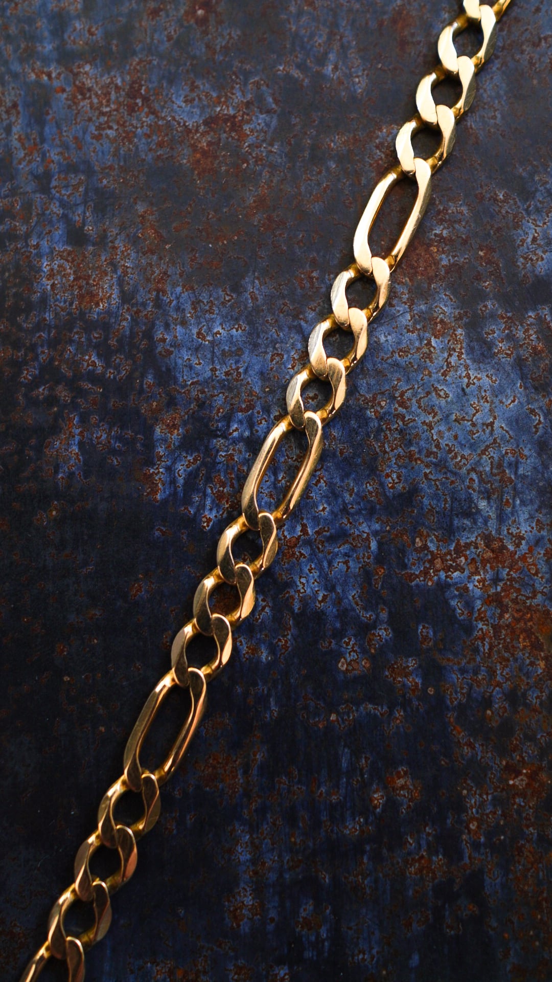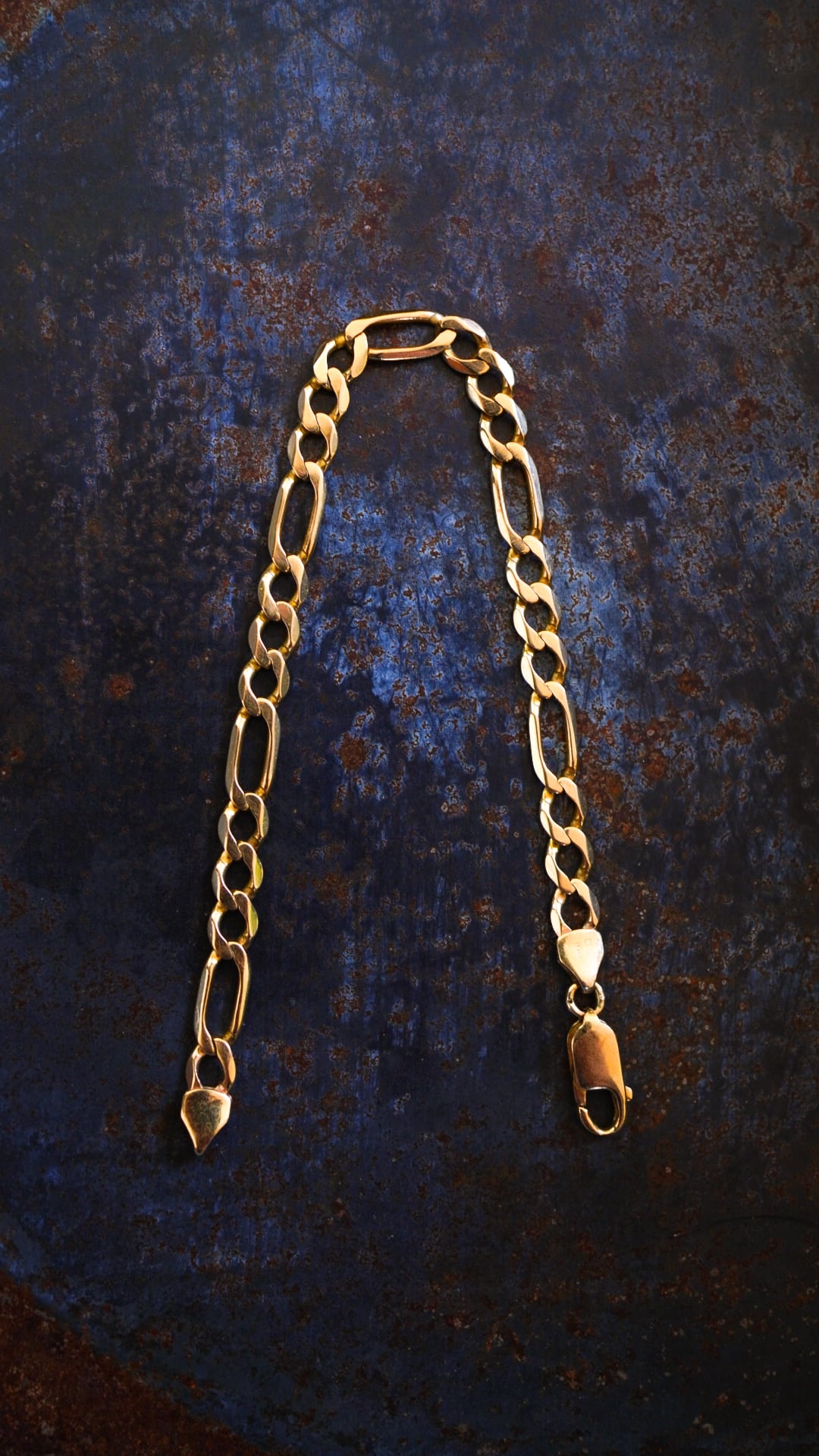 長短2種類のコマを交互に連結したフィガロチェーンで構成されたヴィンテージゴールドブレスレット。