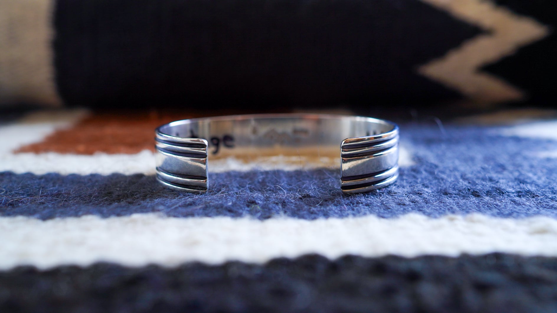 中央に連続するV字模様(シェブロン)が施されたアパッチ族のヴィンテージコンビバングル。