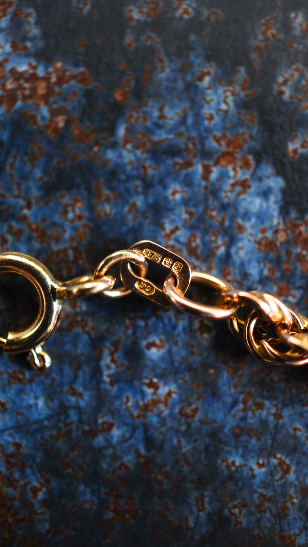 ブレスレットには「375(9ctゴールド)」「ロンドンインポート検室所マーク」等、イギリスの刻印(ホールマーク)が入ります。