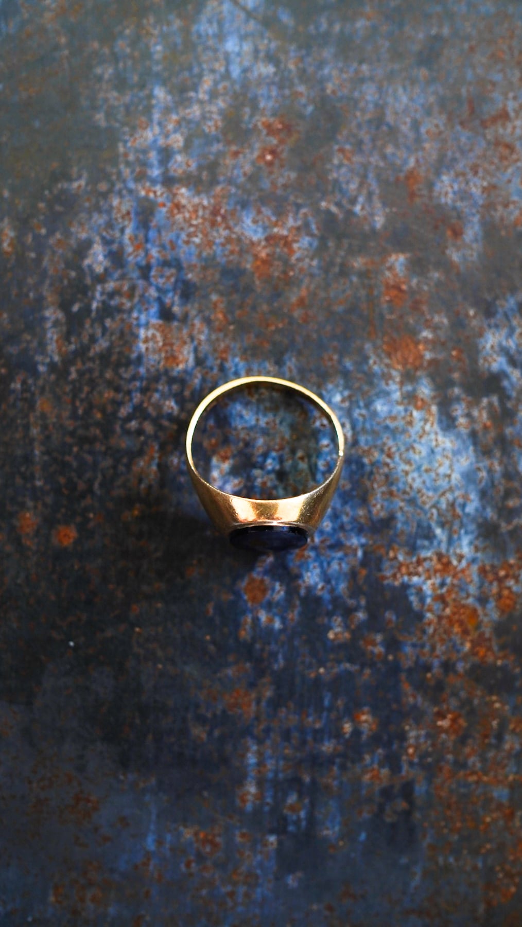 【1969】U.K. VINTAGE 9ct イエロー ゴールド シグネット リング 《9金 ブラックオニキス 指輪 ヴィンテージ》