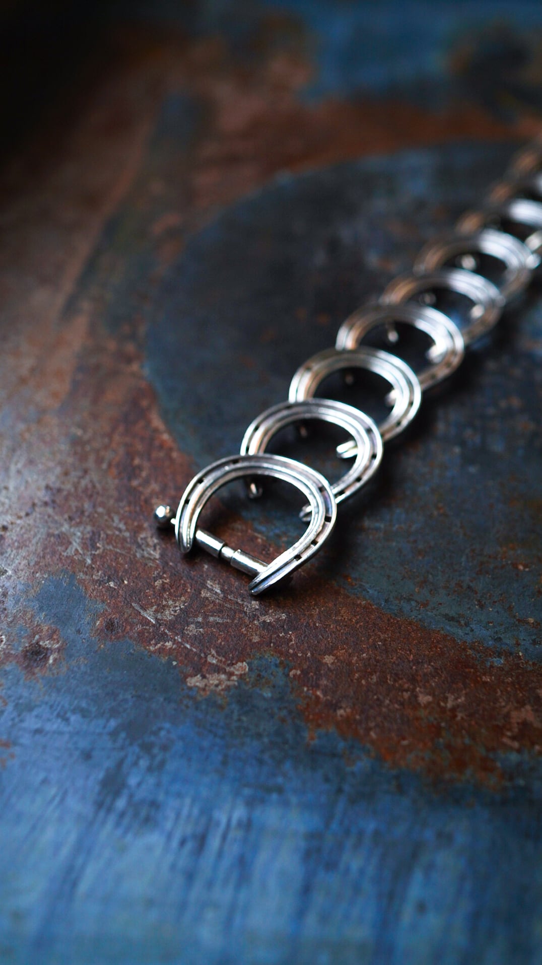 ホースシュー(馬蹄)デザインのコマが連なったグッチ製のヴィンテージブレスレット。