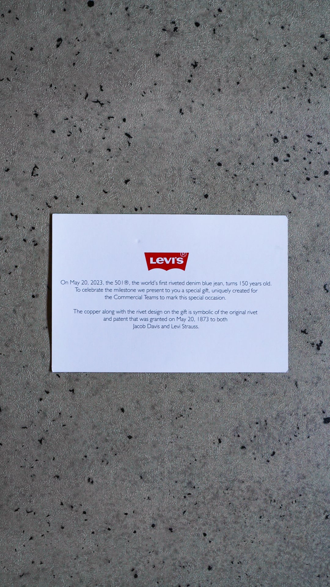 2023年5月20日に世界初のリベット付きデニム「501®」が誕生150周年を迎えたことを記念し、リーバイス社が従業員向けに配布した非売品のアニバーサリーギフト。