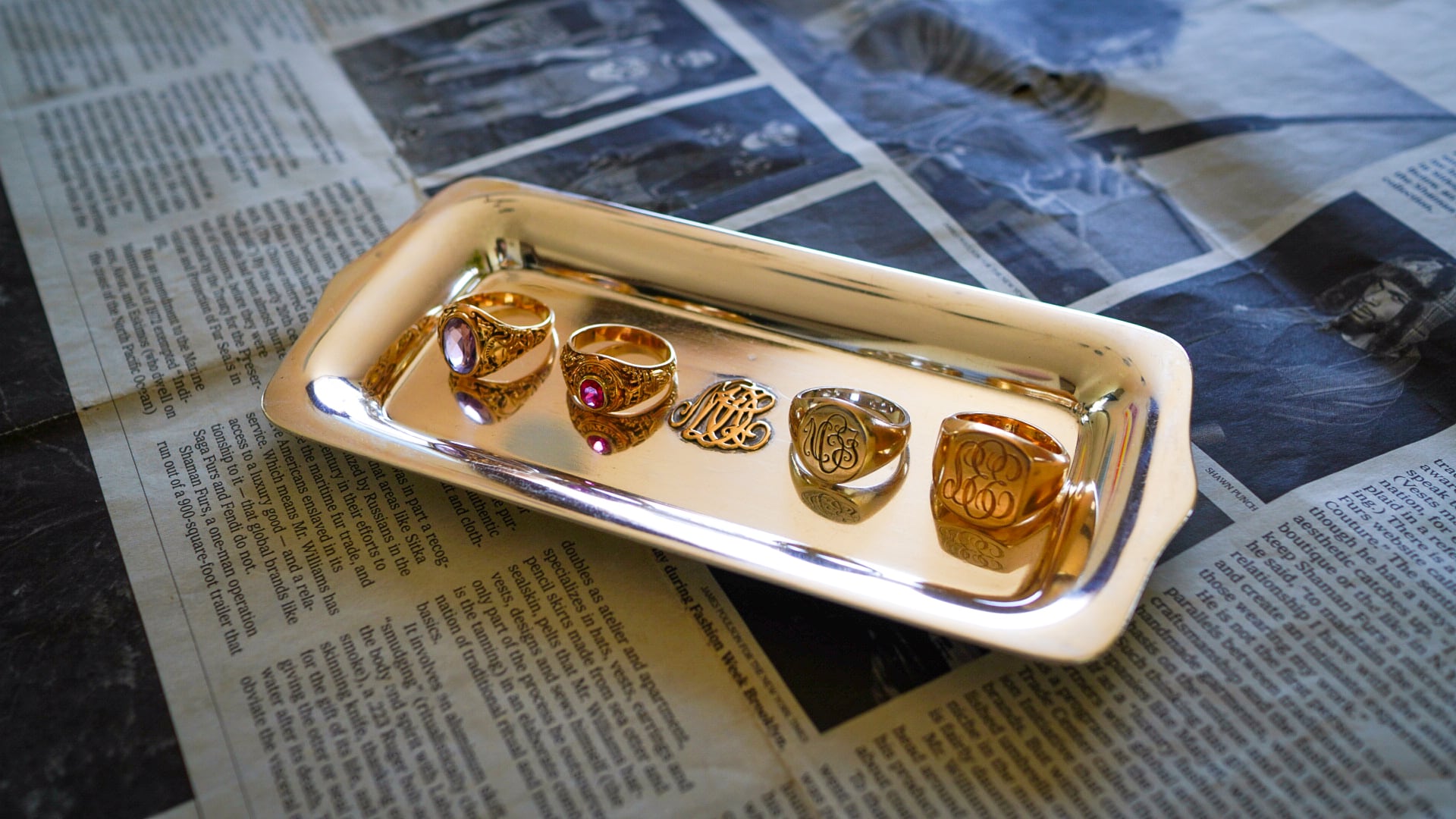 トレイ表面中央には、優美な14金イエローゴールド製のインターロッキングモノグラムが立体的にあしらわれています。