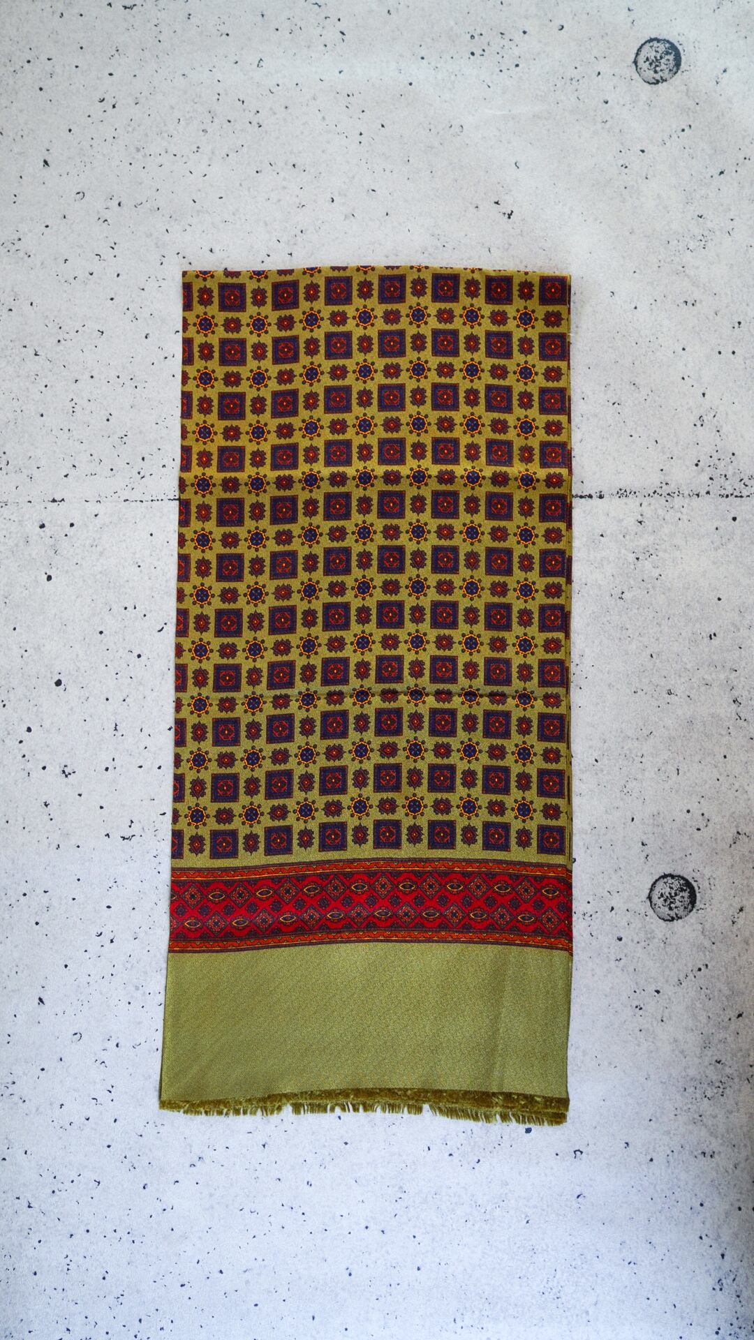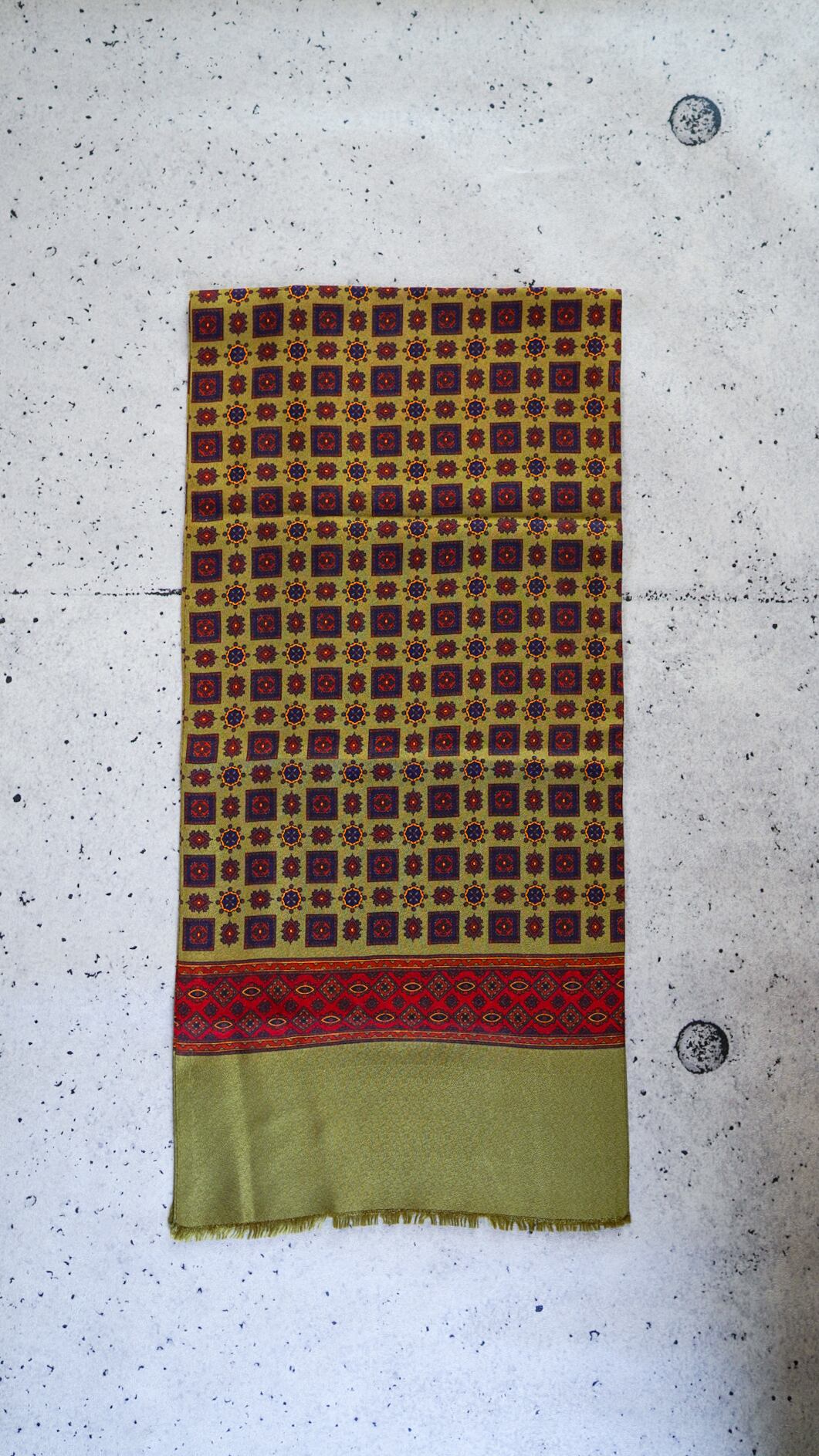 U.K. VINTAGE Geomertic Pattern Scarf (Olive)