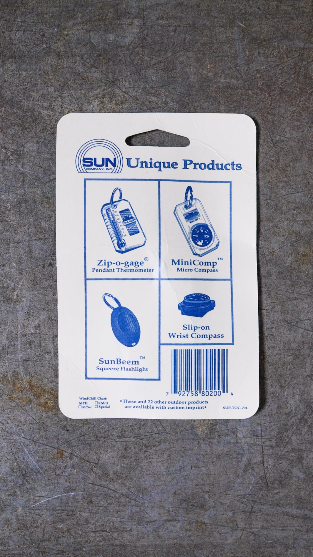 製造元のSUN COMPANYは、1971年にジッパープル型温度計Zip-o-Gage(ジップオーゲージ)や、コンパスを組み合わせた派生モデルTherm-o-Compass(サーモコンパス)を開発し、アウトドアギアとして大ヒットさせたメーカーです。