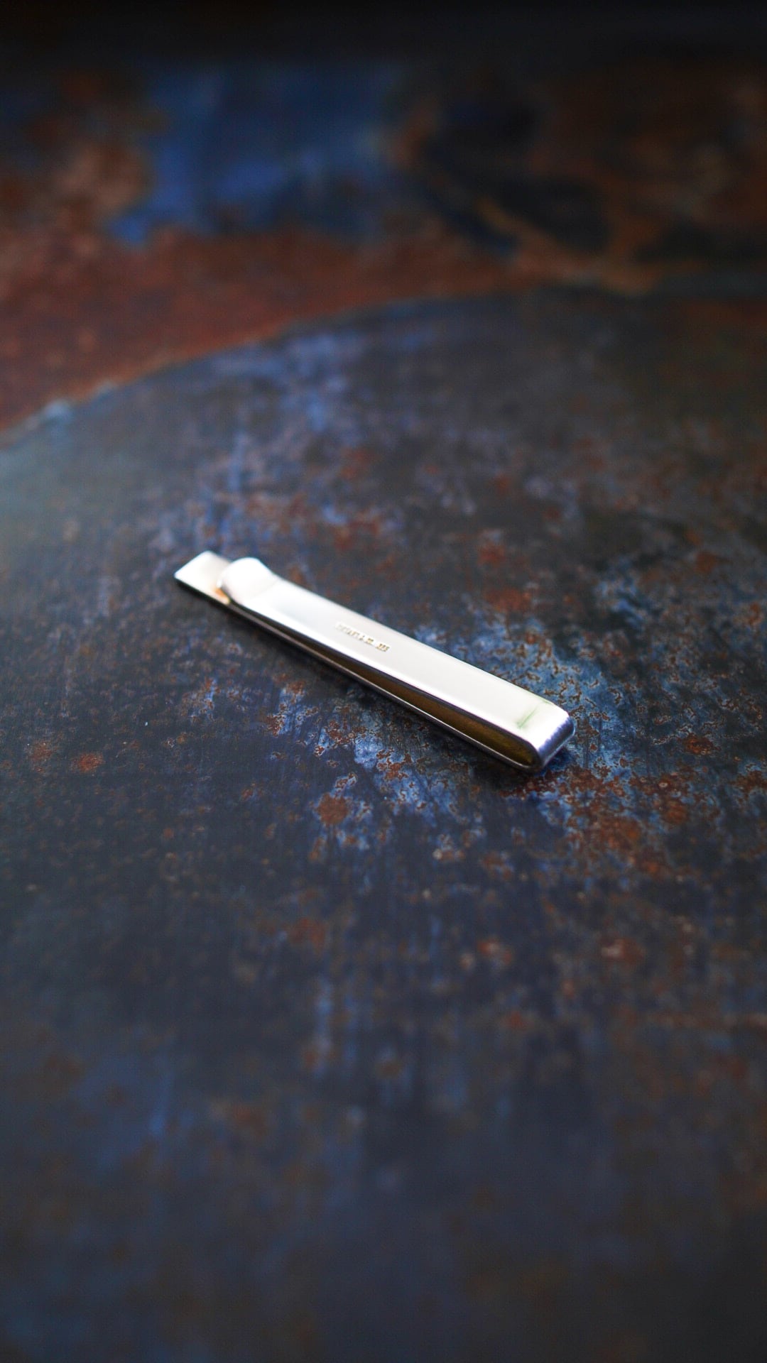 ネクタイピン表面の中央にイニシャルが入っていないシンプルデザインの個体になります。