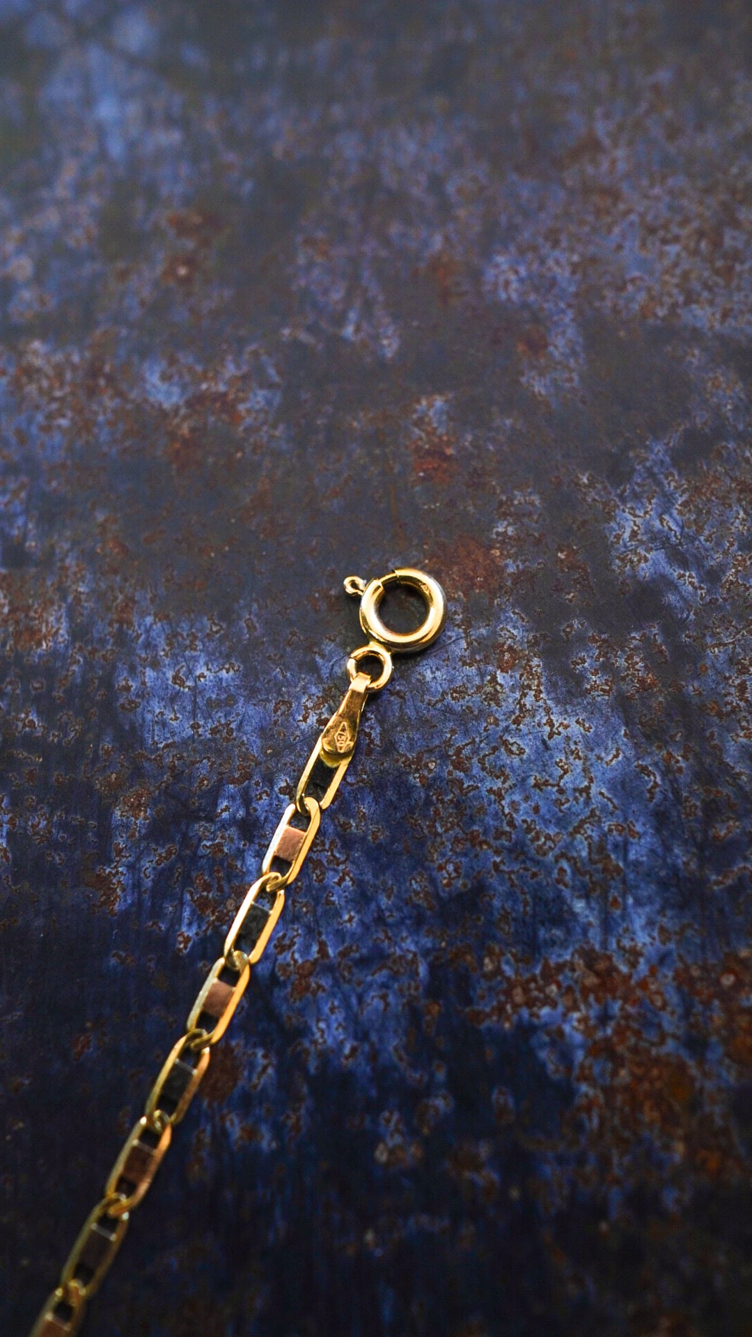 輝きを放つイエローゴールドのフラットマリーナチェーンを用いたヴィンテージゴールドネックレス。