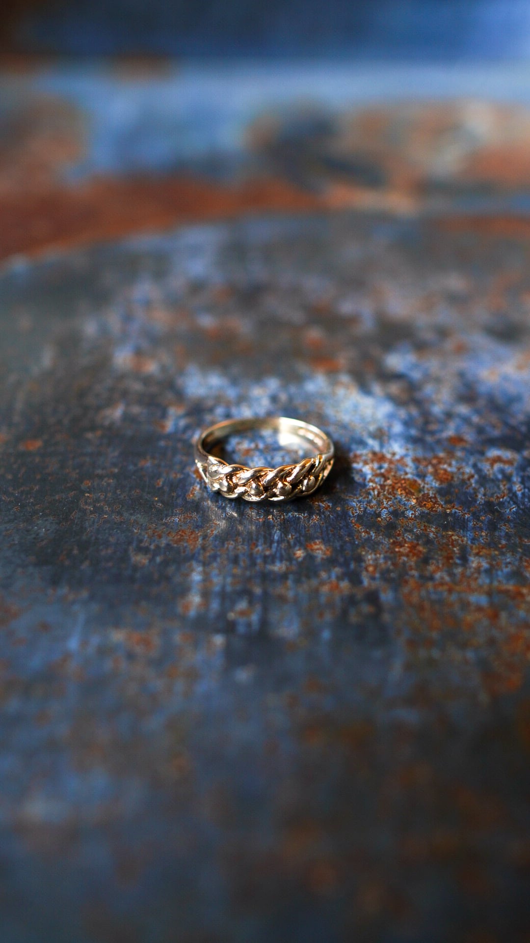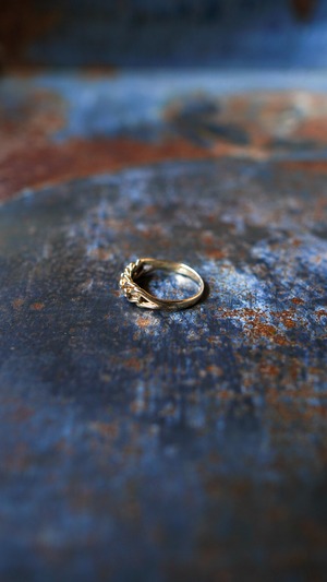 イギリスから買い付けたロープを編んだようなデザインに粒状の装飾が施されたヴィンテージゴールドキーパーリング。
