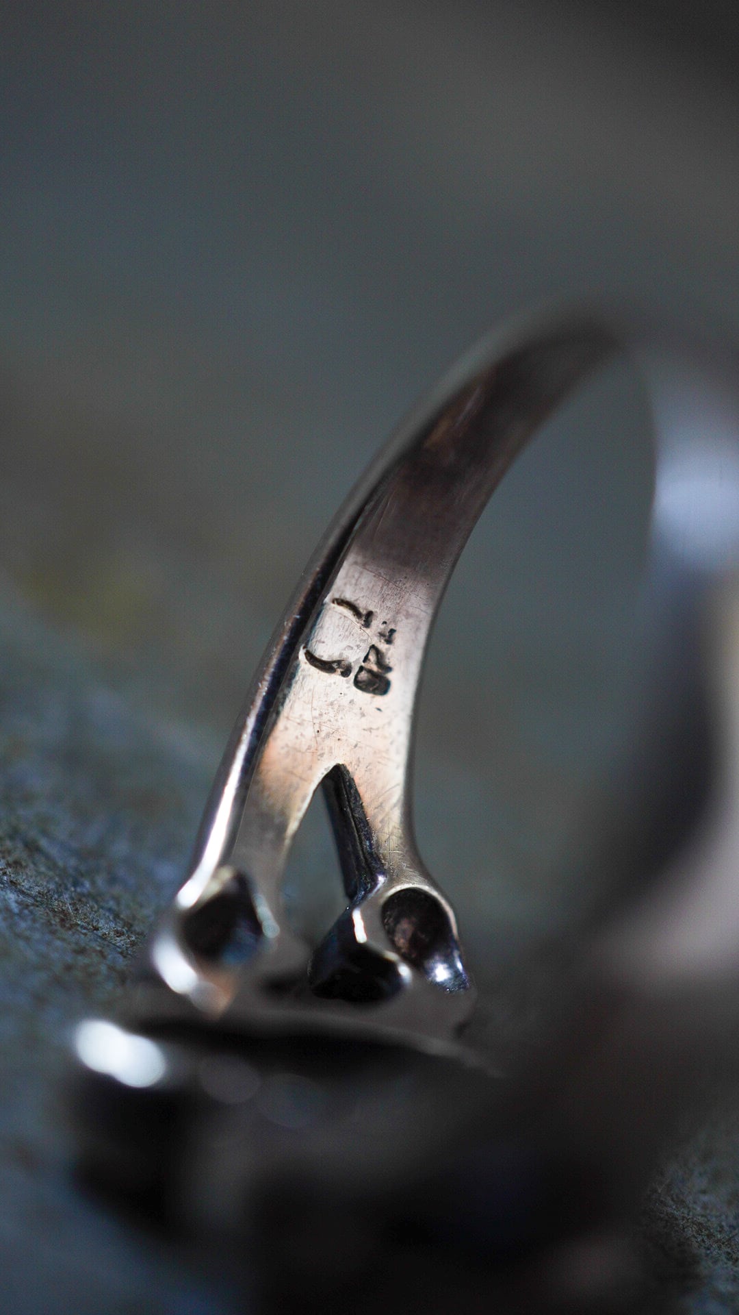 シルバーで仕立てられたフルール・ド・リス(ユリの紋章)モチーフのヴィンテージリング。