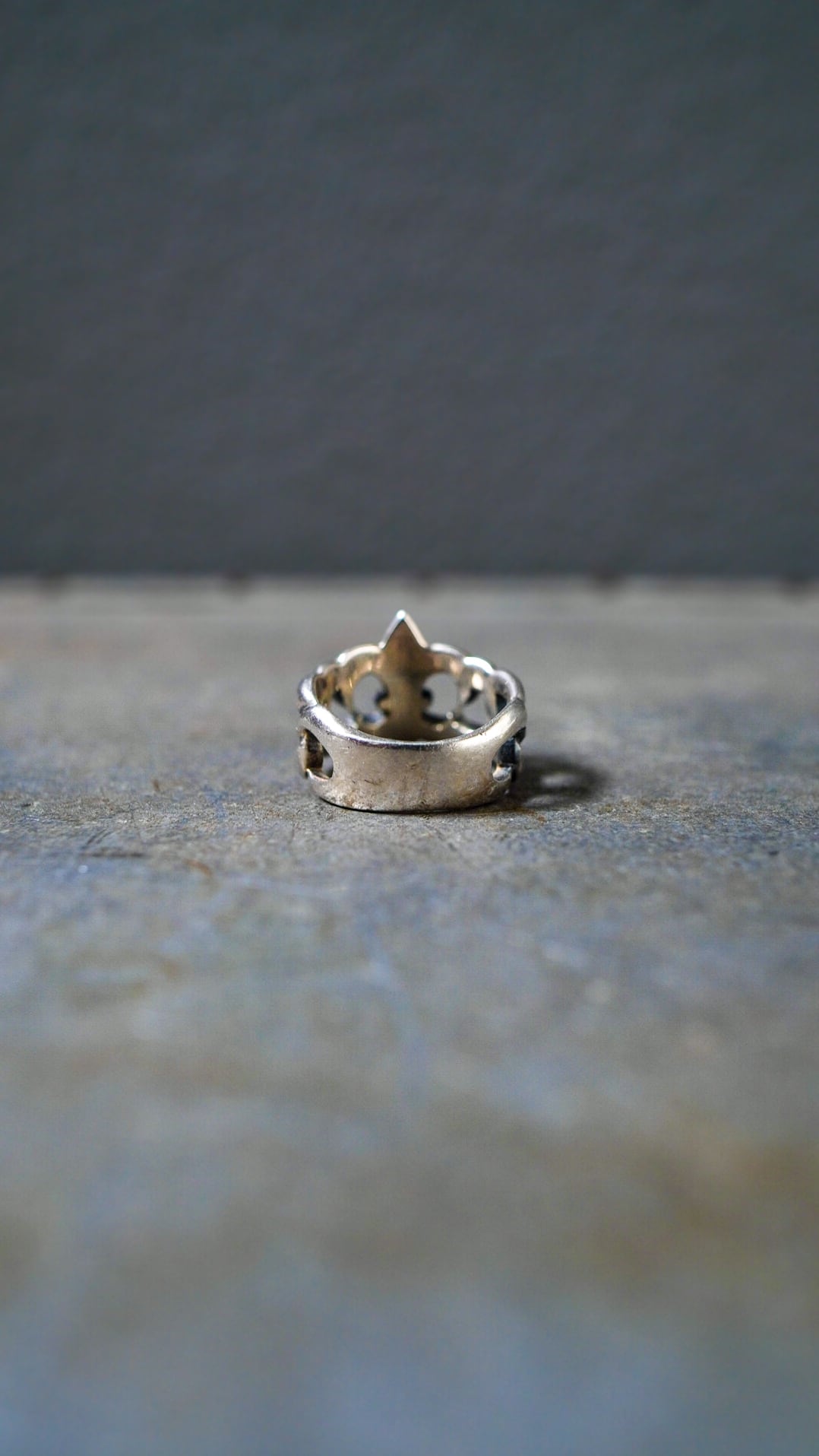 シルバーで仕立てられたフルール・ド・リス(ユリの紋章)モチーフのヴィンテージリング。