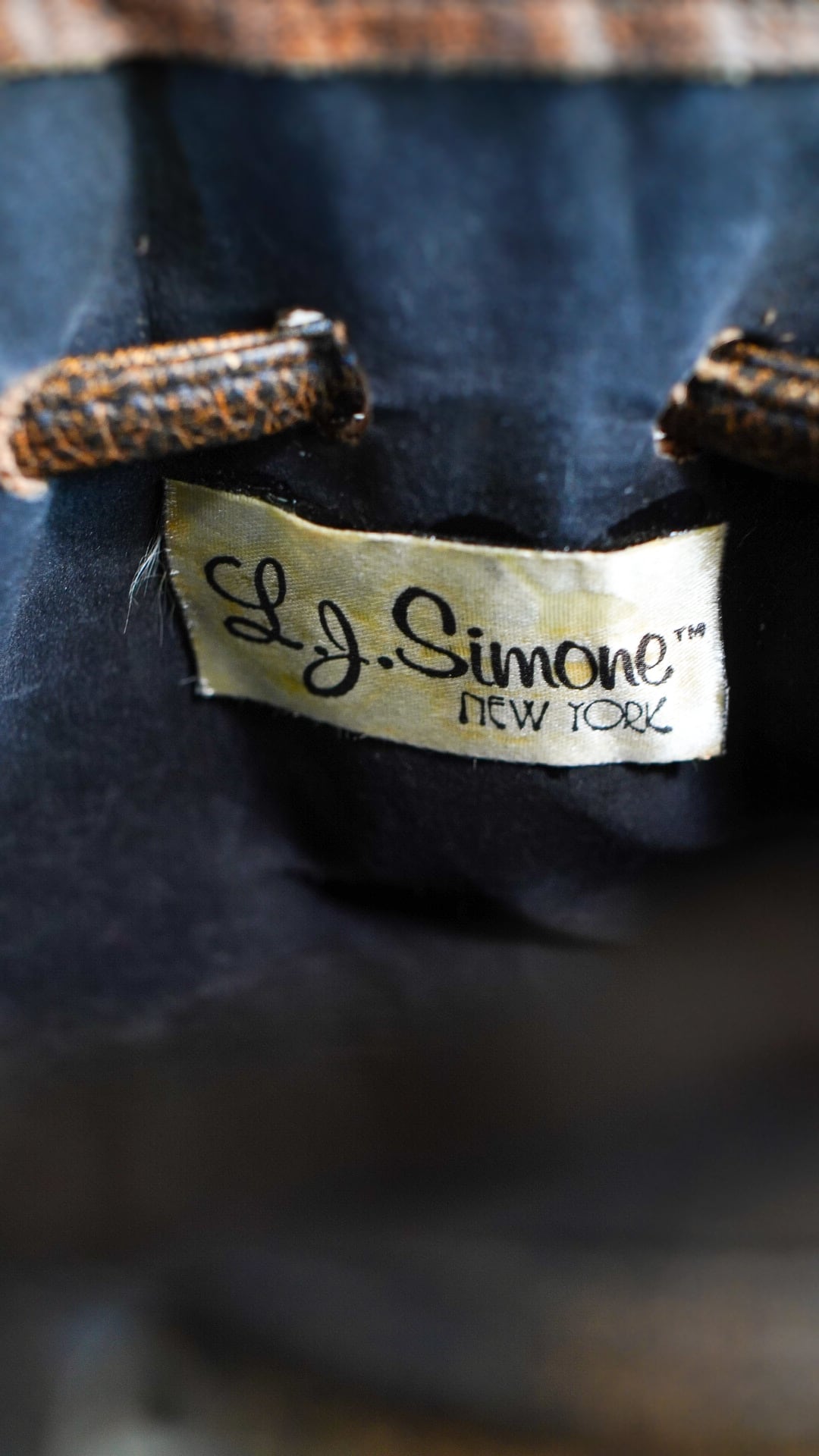 1970-1980年代頃のアメリカ市場で展開されていたL.J. Simone製のレザー巾着バッグ。