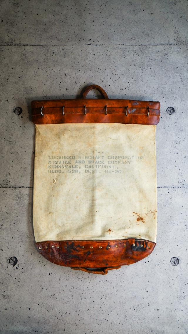 【1970-1980s】L.J. Simone エル・ジェイ・シモーネ アメリカ軍 パッチ レザー 巾着バッグ 《U.S. Military ミリタリー ワッペン ヴィンテージ》