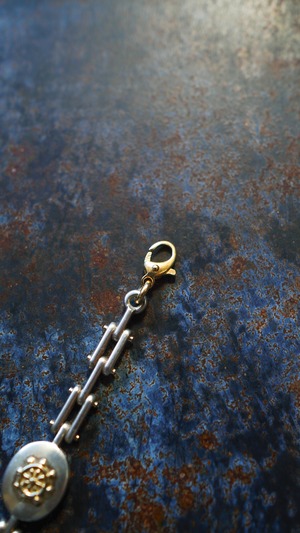 シップホイールというマリンモチーフに、構造美を感じさせる端正なチェーンを組み合わせたヴィンテージならではの一本です。