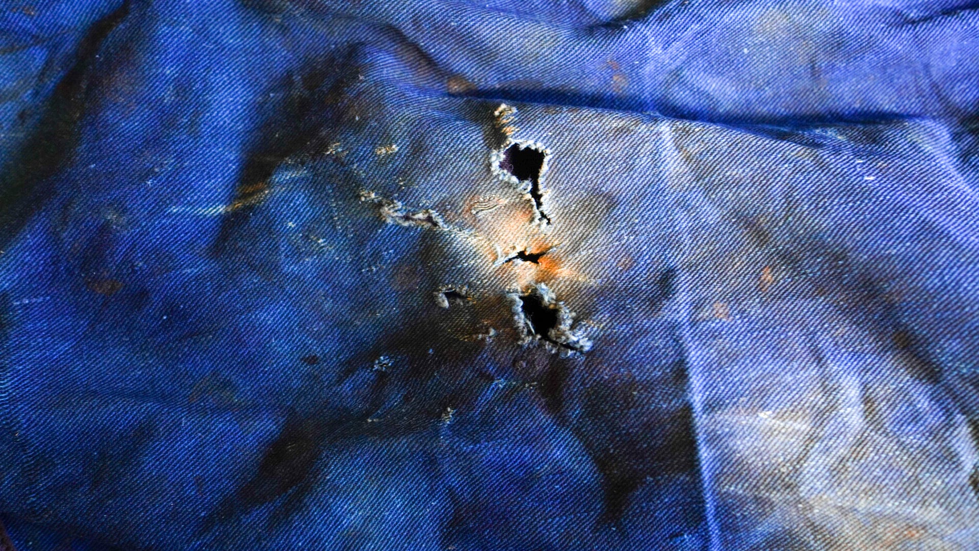 茄子紺系×インディゴブルー系のツートンカラーが特徴的で、前面に管理表記を示すステンシルや部隊を示す赤いロゴのペイントが施された只ならぬ存在感を放つ個体です。