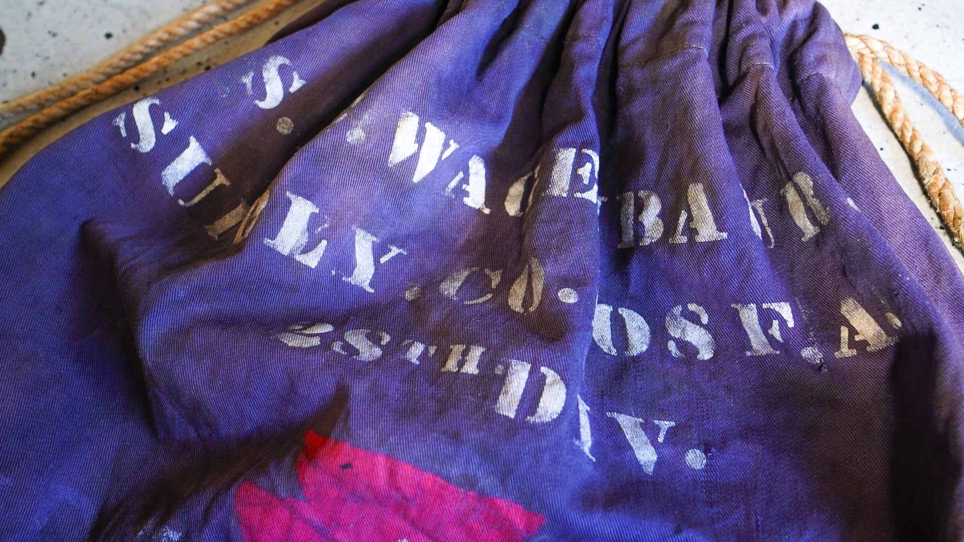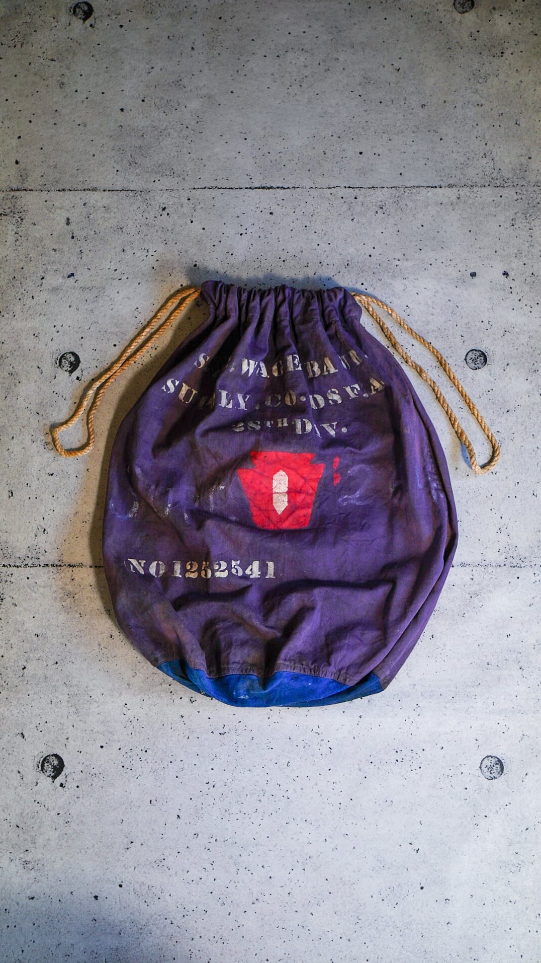 その名の通り洗濯物の収納やバラック(兵舎)内での荷物入れ等として使用されていたコットン生地のヴィンテージバッグ。