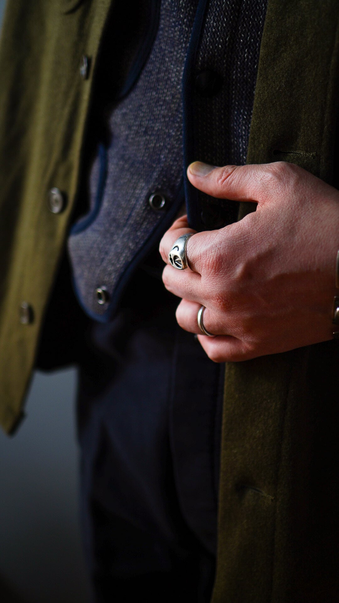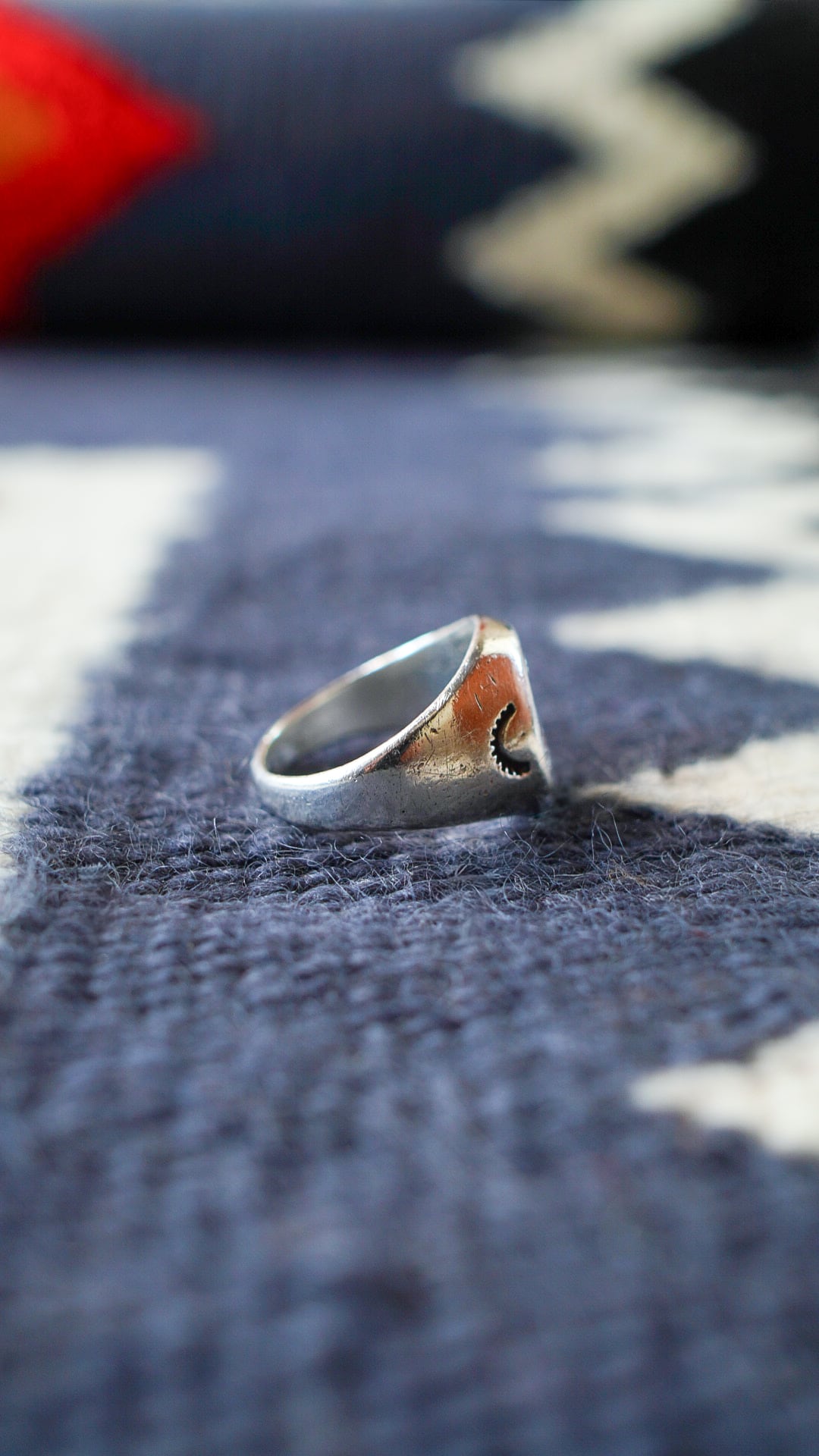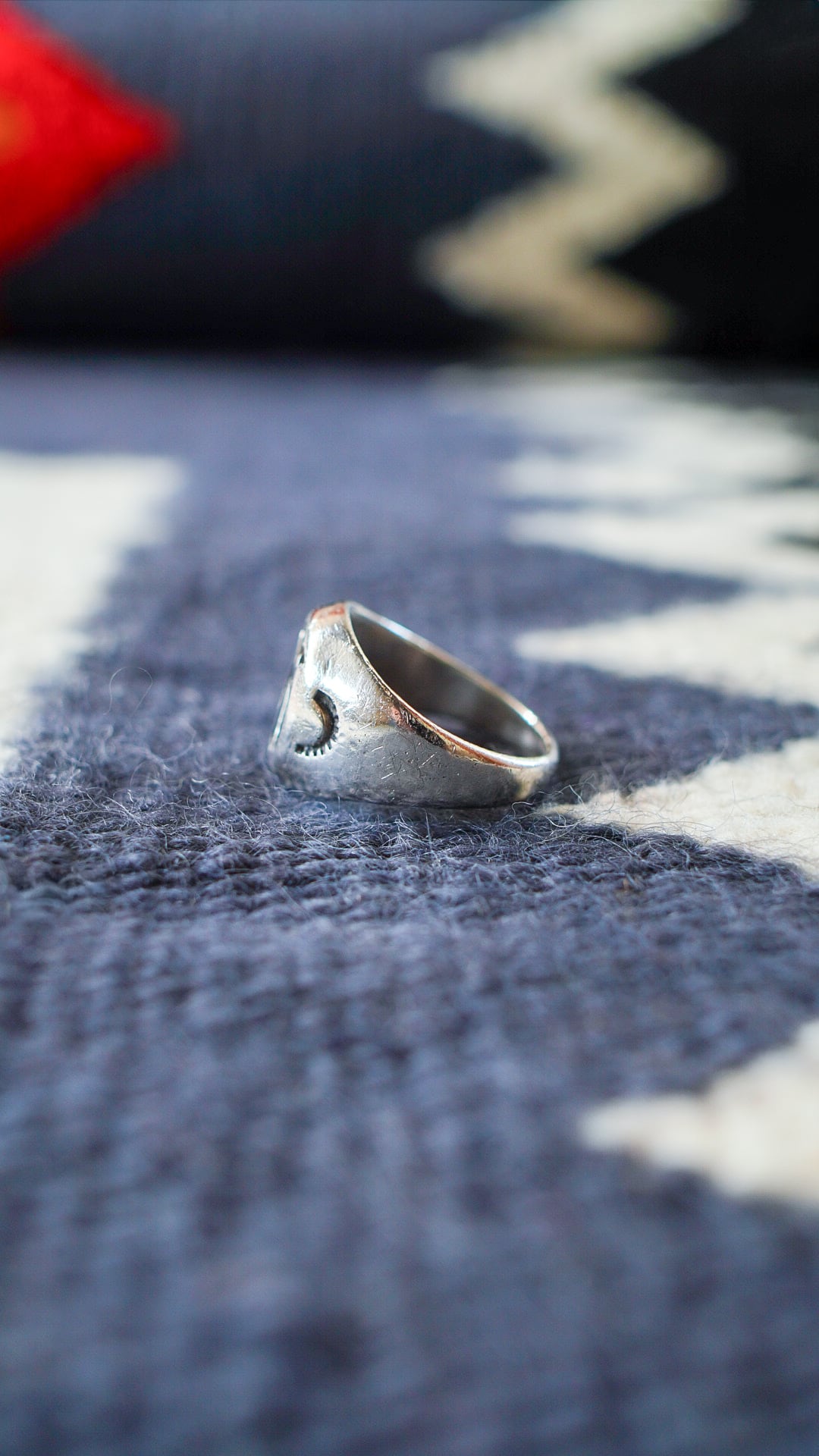 いずれのスタンプワークも深く打ち込まれており、陰影と立体感が際立ったヴィンテージリングです。