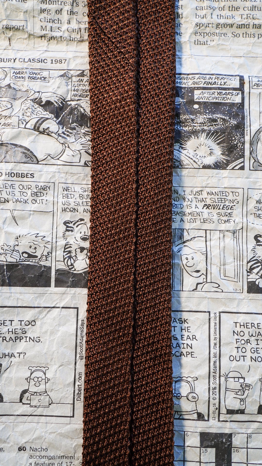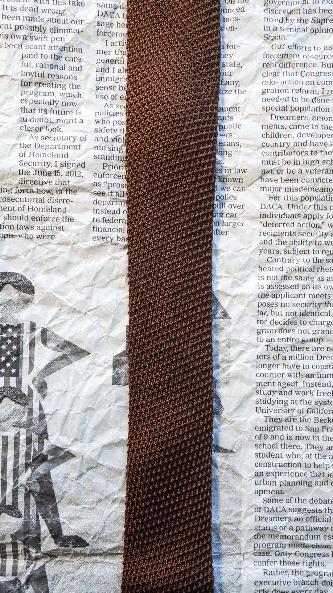 立体感のある表情を持ちながらも、上品で落ち着いた印象に仕上がっており、ニットタイを思わせる柔らかさと織物ならではの端正さを併せ持っています。