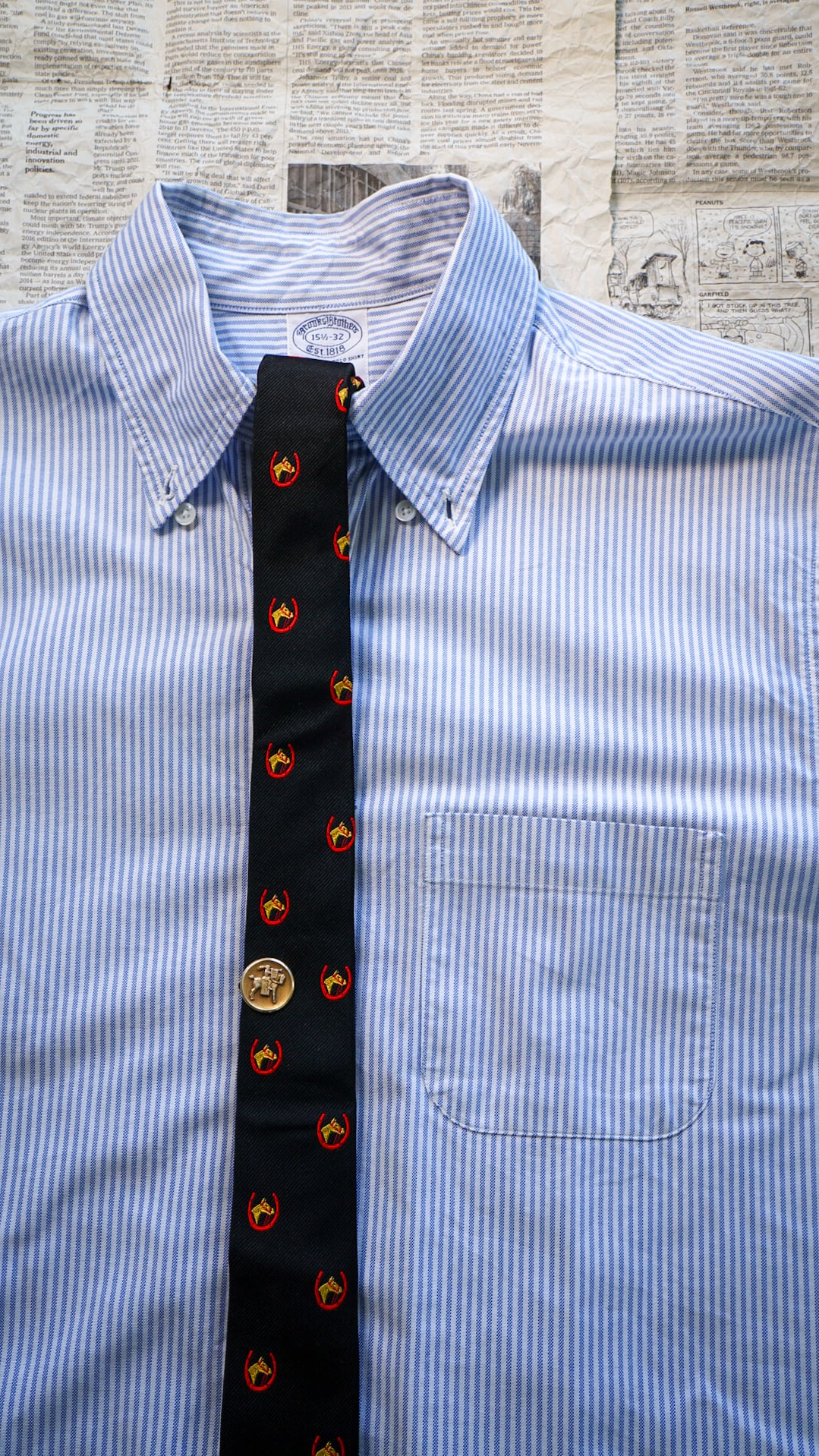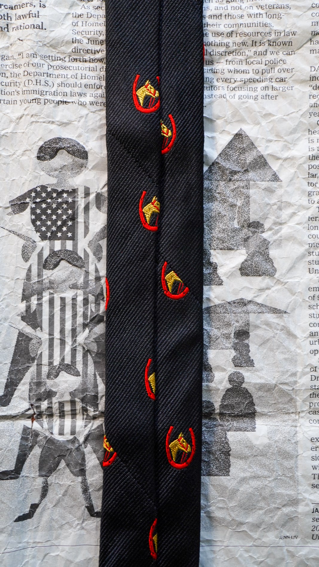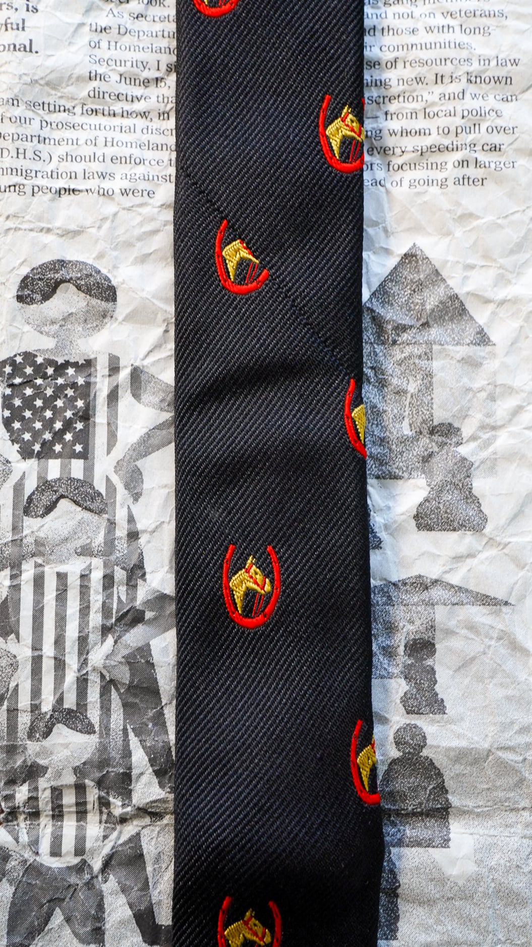 【1970s】BROOKS BROTHERS ブルックスブラザーズ ホースシュー & ホースヘッド柄 ナロータイ 《黒タグ ヴィンテージ ネクタイ》
