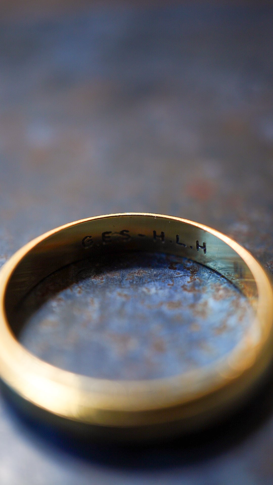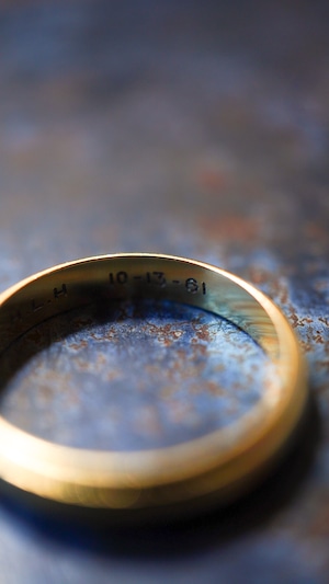 両端に繊細なミルグレインが施されたカルティエ製のヴィンテージゴールドバンドリング。