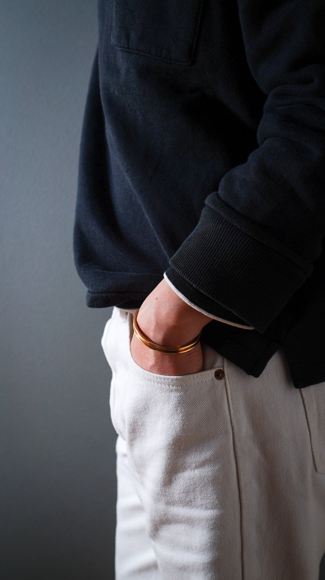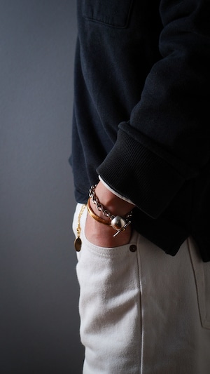 単体でサラッと着けても腕元の主役として十分に活躍してくれますし、細身が故に腕時計やブレスレットとの重ね着けにも相性が良く、幅広いスタイリングに馴染むバングルです。