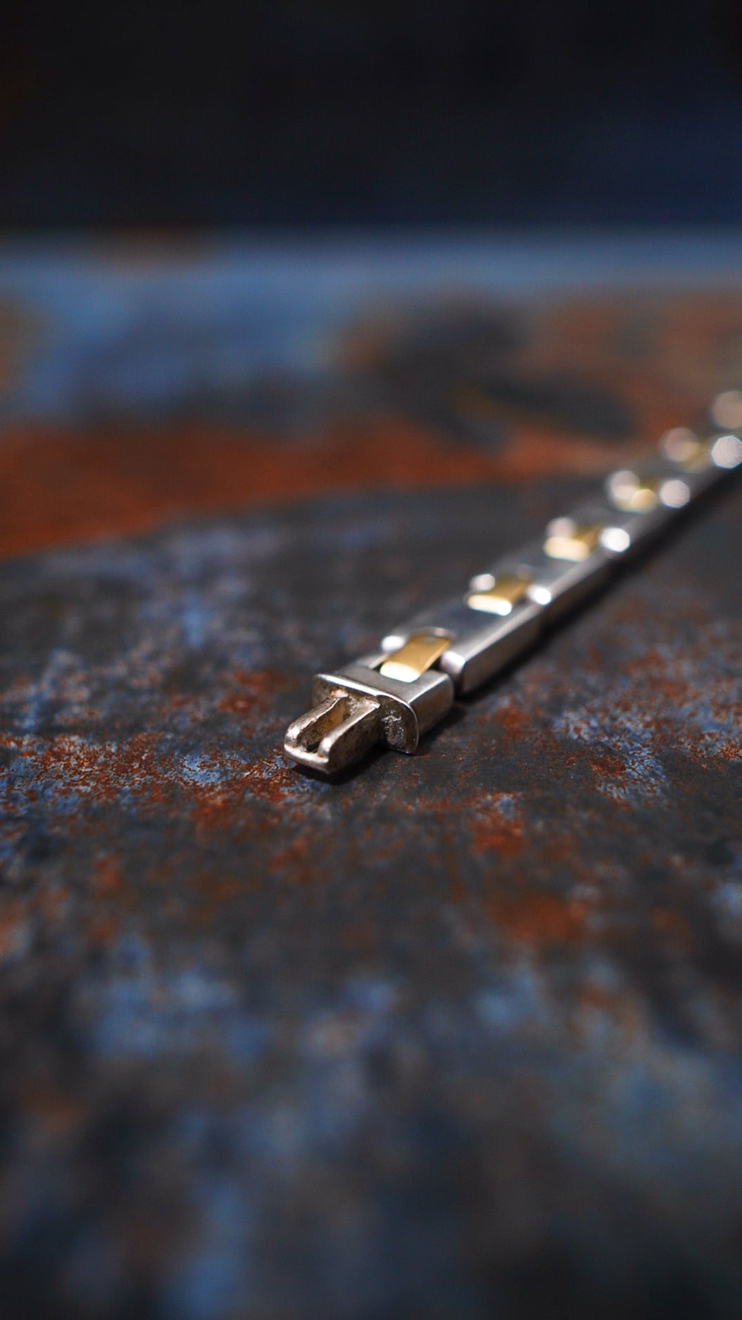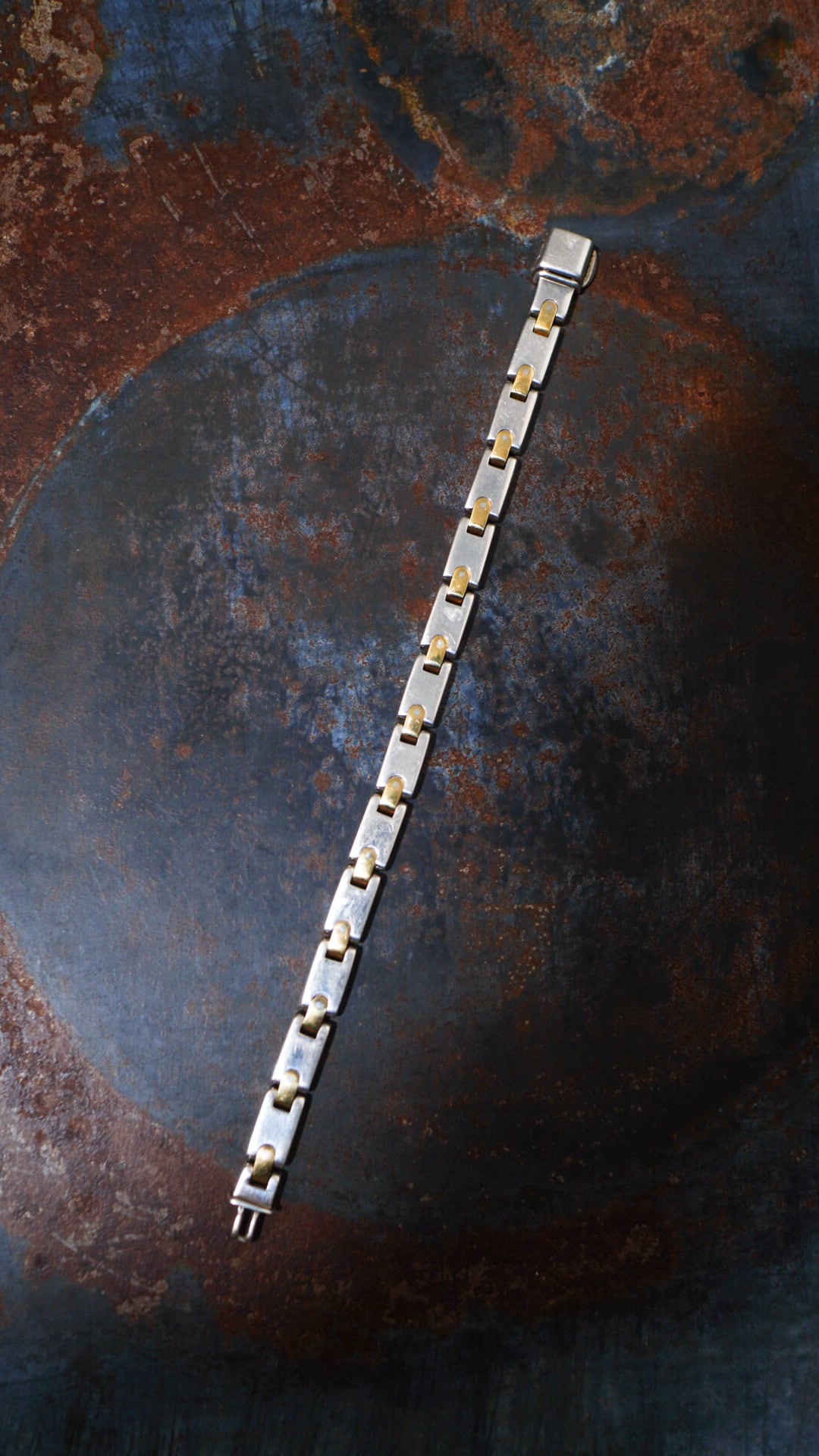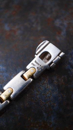 肉厚に造形されたシルバーのH型モチーフをイエローゴールドのバーで繋いだ構造が特徴的なティファニー製のヴィンテージブレスレット。
