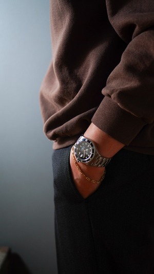 クラシカルなデザインが魅力的で、単体でも他のブレスレットや腕時計との重ね付けでも自然に馴染みやすく、幅広いスタイルに取り入れやすいアイテムです。
