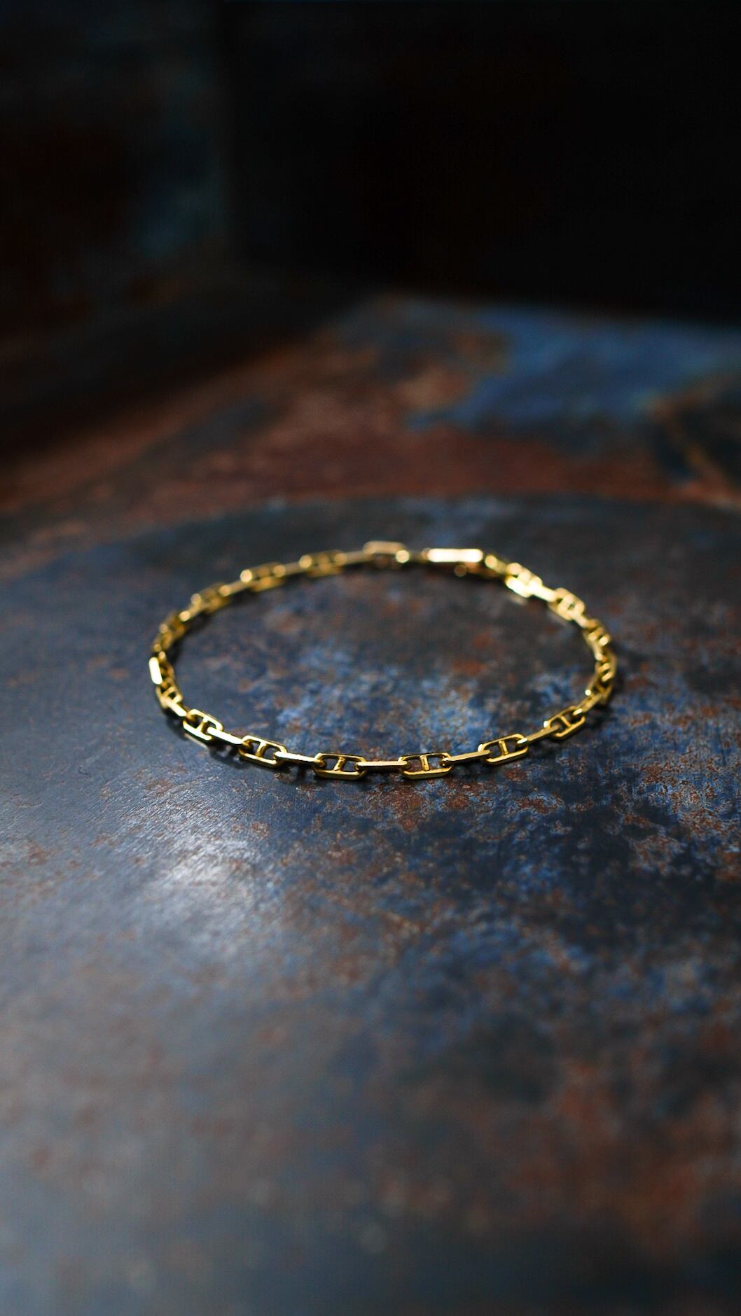 人気のアンカーチェーンを用いたヴィンテージゴールドブレスレット。