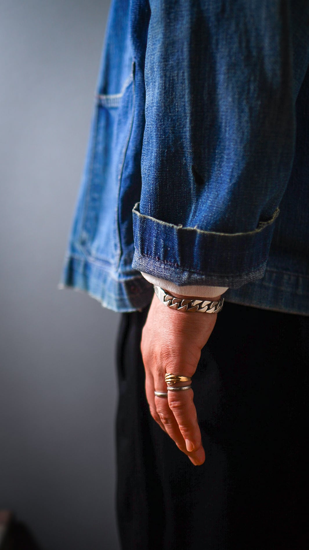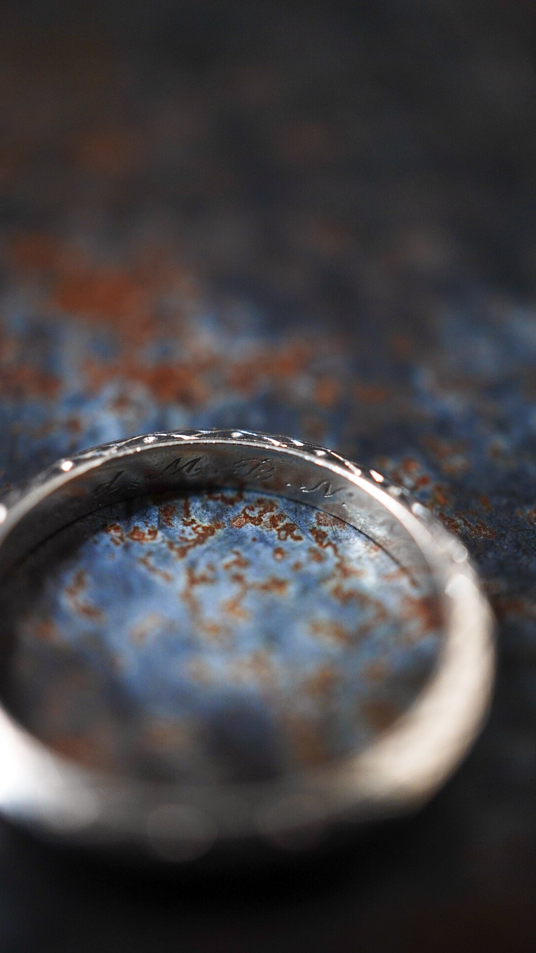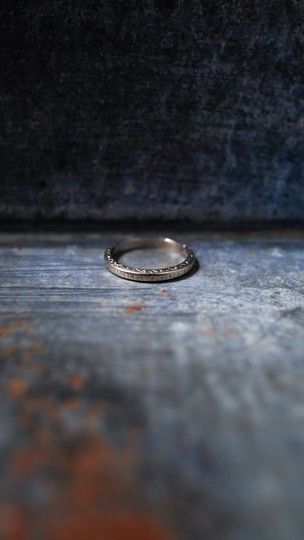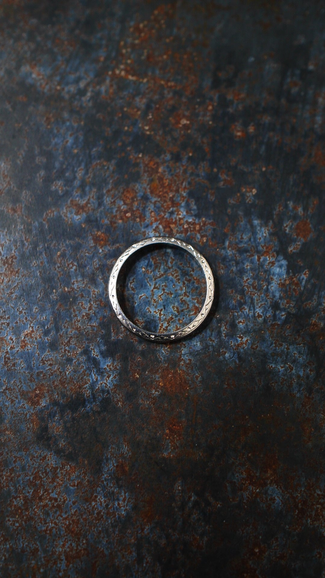 シンプルなバンドリングでありながら、細かな彫り装飾によってさりげない存在感を放つ一品です。