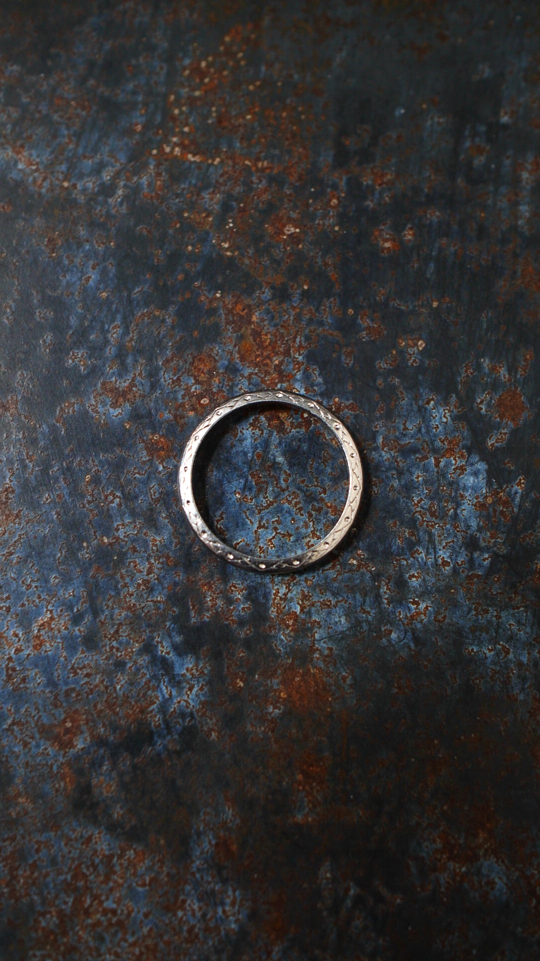 他のリングとのスタッキングにも取り入れやすく、程良いアクセントを加えてくれるデザインです。