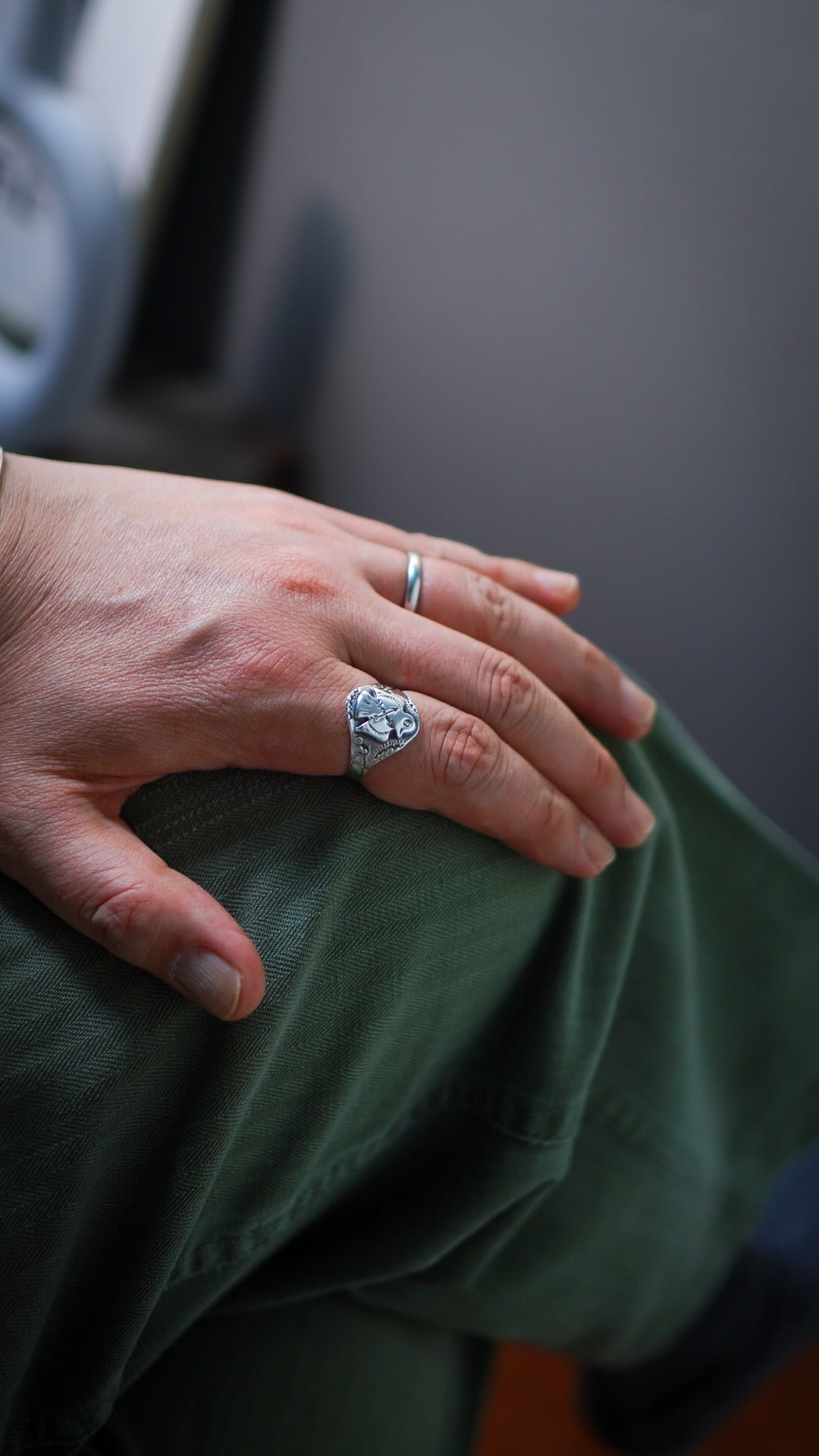 この手のナバホリングとしては比較的薄手の作りとなっており、フレッドハービーらしい意匠ながらも落ち着いた存在感が魅力の一点です。