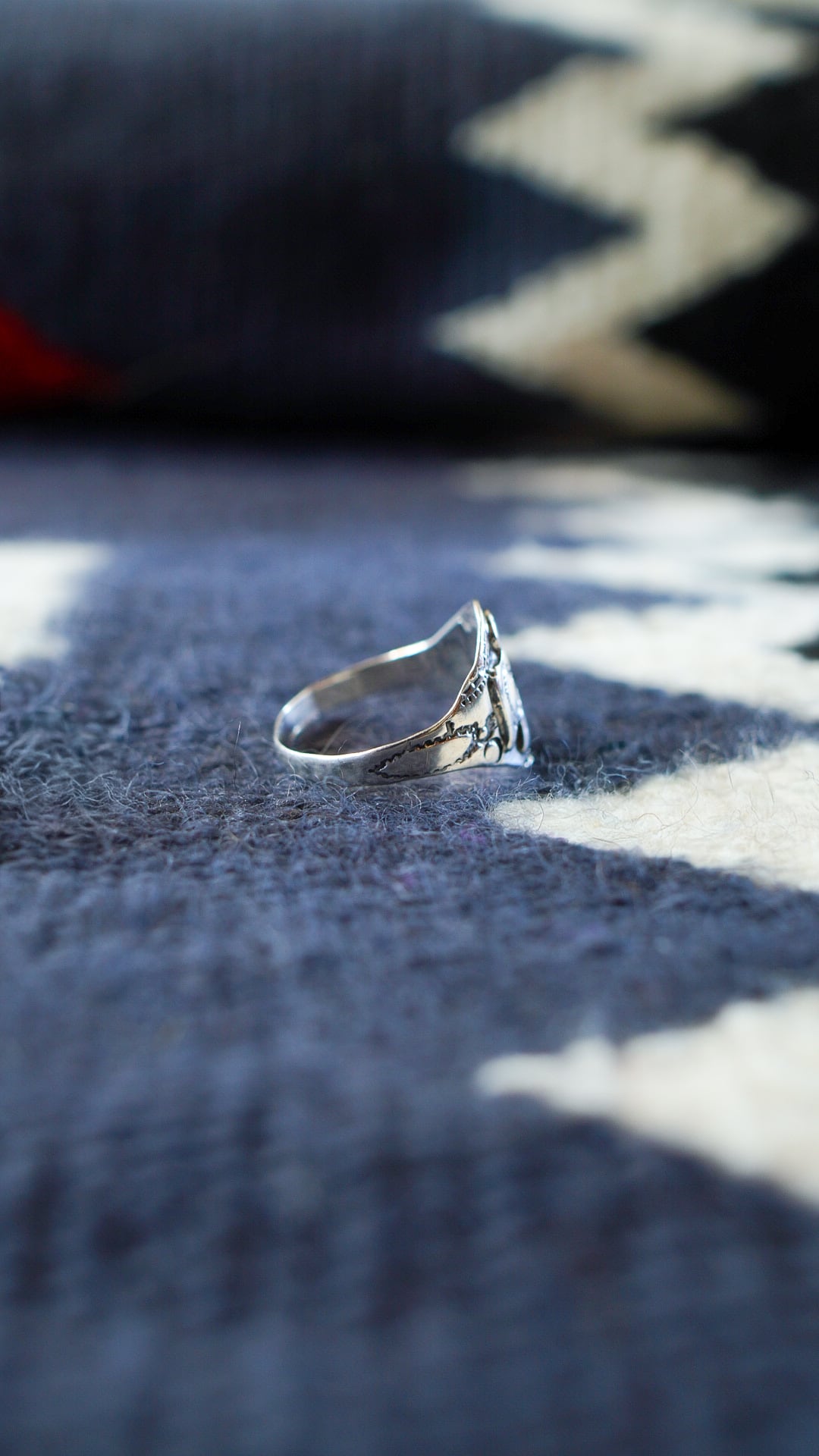 また、リング側面にもナバホのトラディショナルなスタンプワークが施されています。