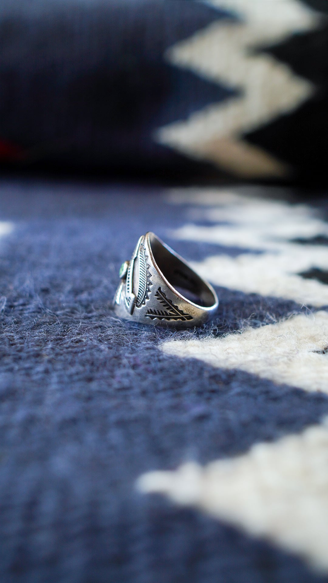 また、リング側面にもナバホのトラディショナルなスタンプワークが施されています。