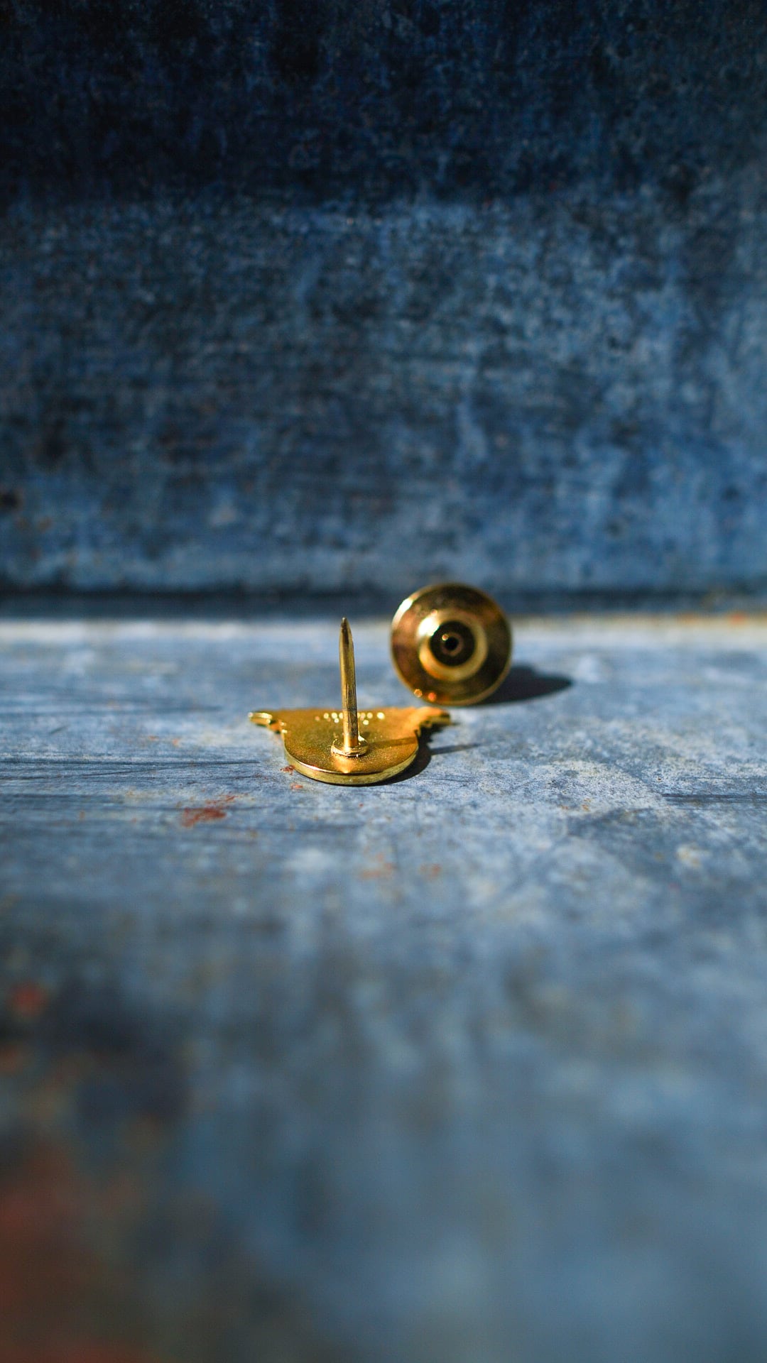 ジャケットやコート、帽子、バッグ等、どんなアイテムにも馴染みやすいデザインで、1つあると間違いなく重宝するピンバッチです。