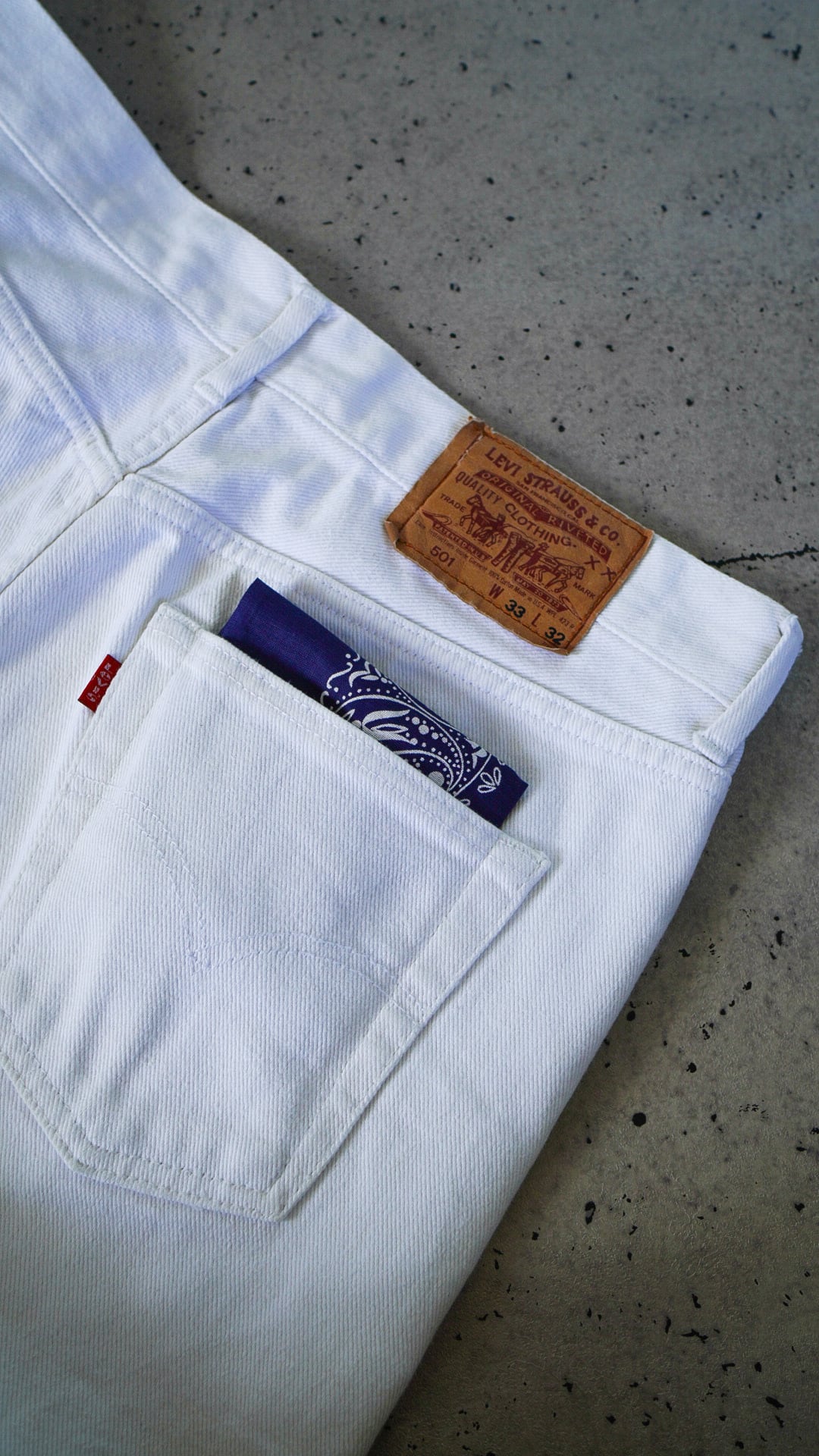 デッドストックのため生地には張りがあり、水通し前のコンディションを保っています。