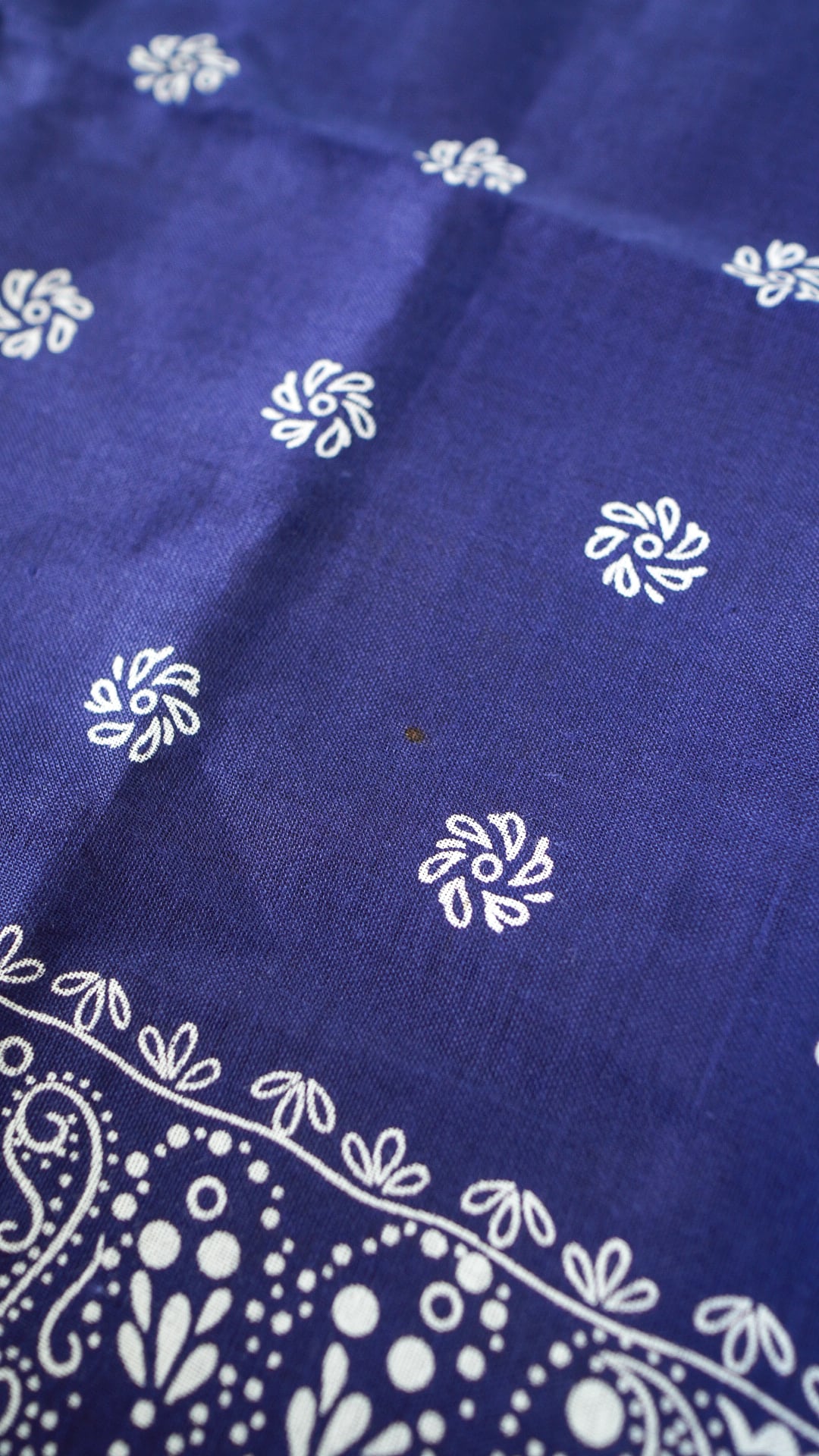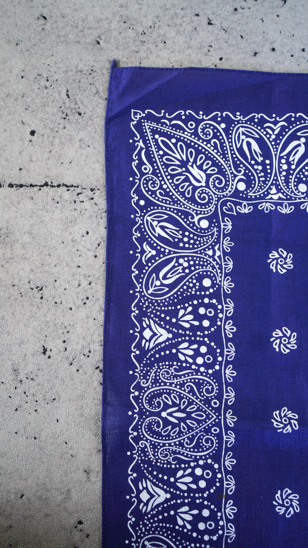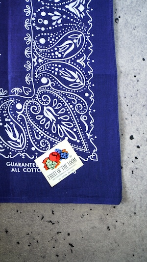 【DEADSTOCK / 1970s】FRUIT OF THE LOOM フルーツオブザルーム フラワー柄 バンダナ《デッドストック GUARANTEED FAST COLOR ネイビー 片耳 ヴィンテージ》