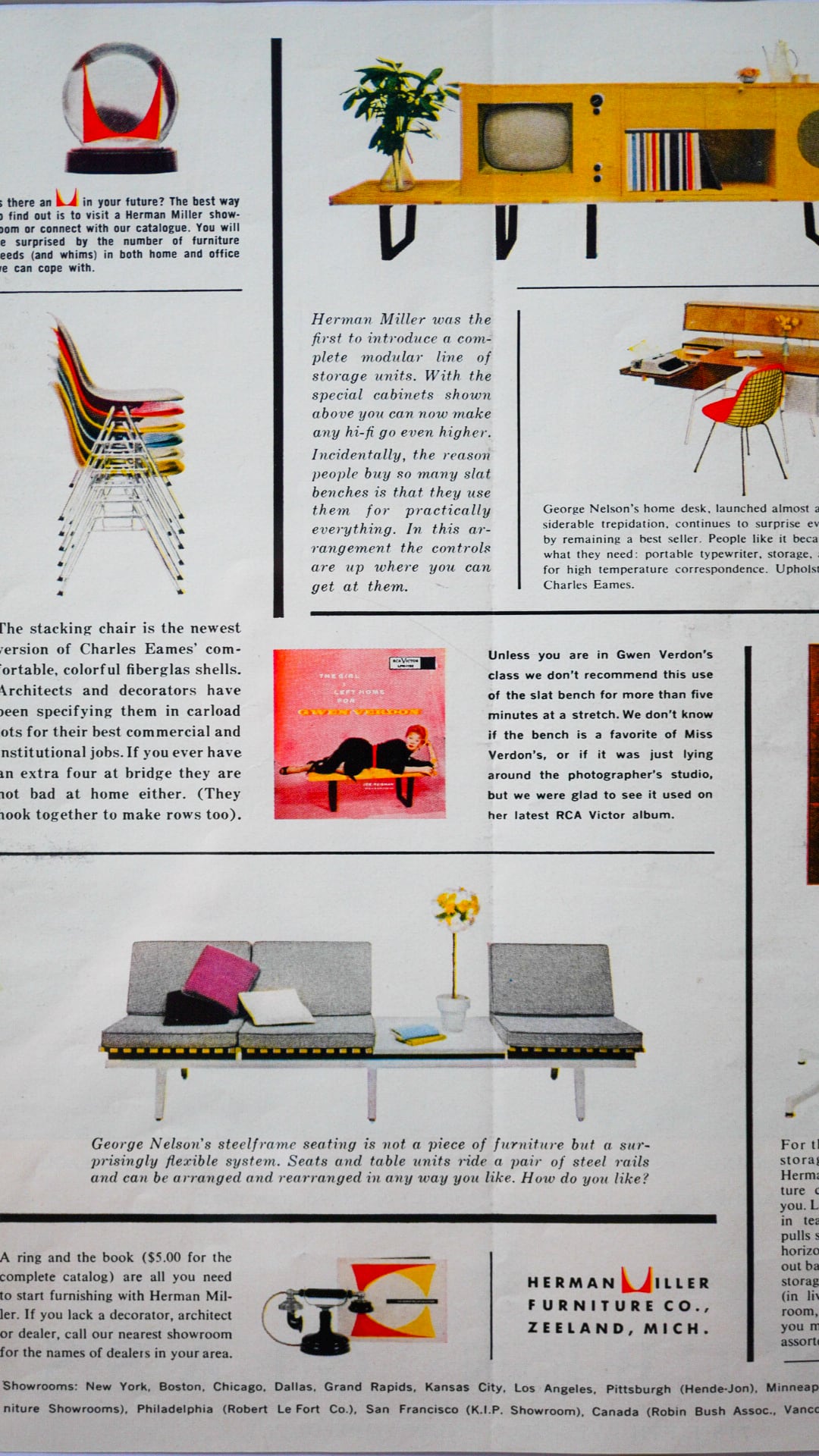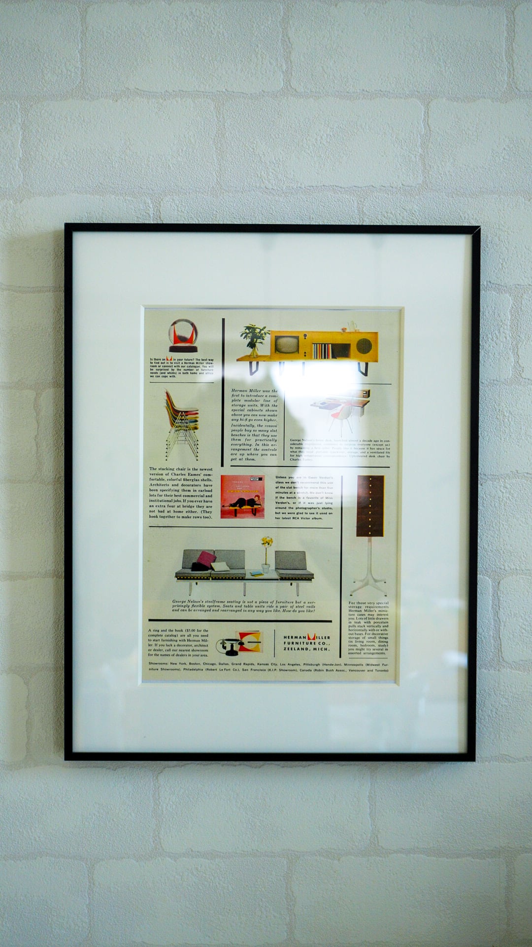 ヴィンテージ雑誌に掲載されていたHERMAN MILLERのファニチャー(Eames, George Nelson等)広告。