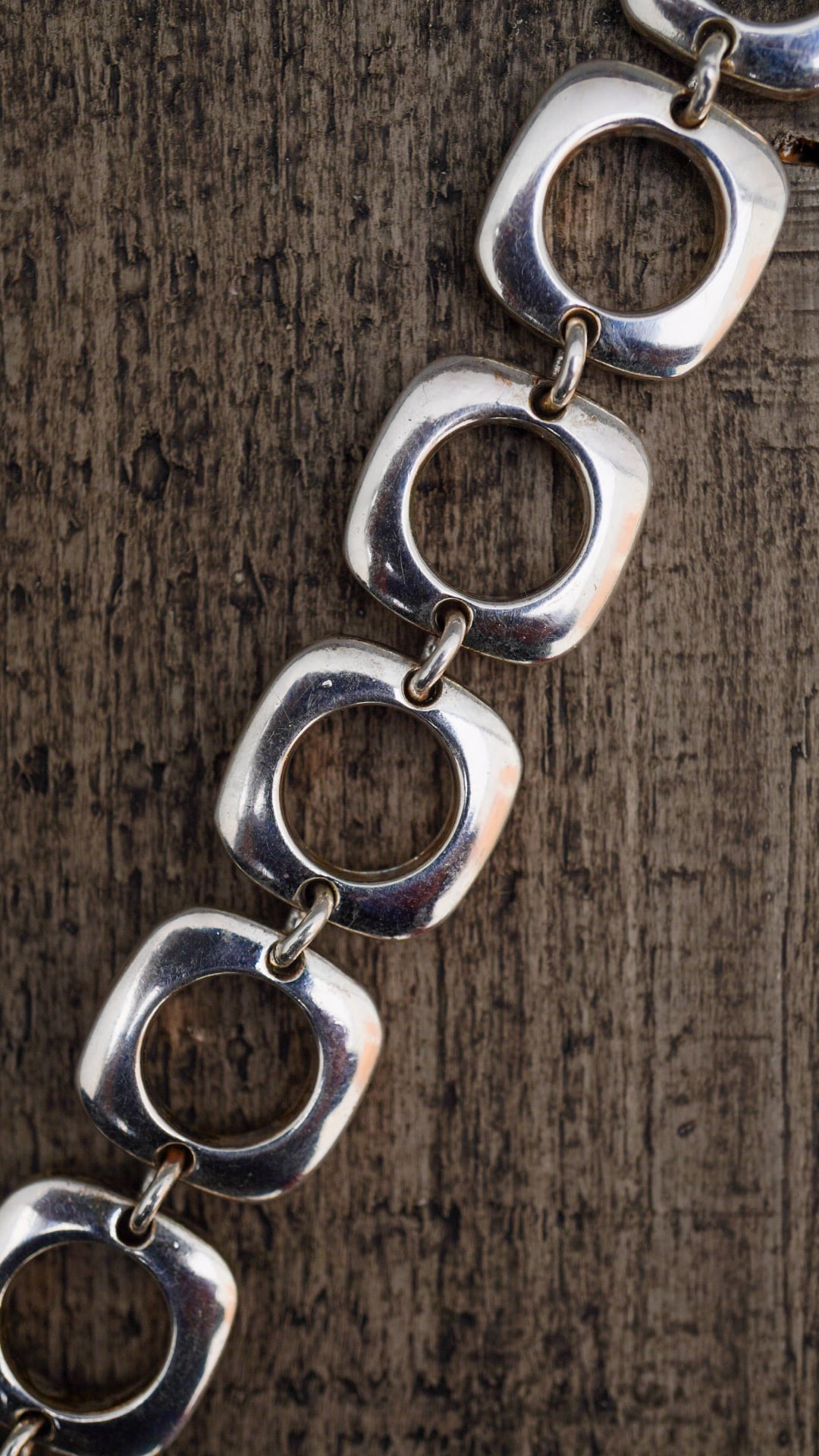 デザイン性のあるスクエアクッションが特徴的でティファニーらしい上品な雰囲気が漂うヴィンテージブレスレット。