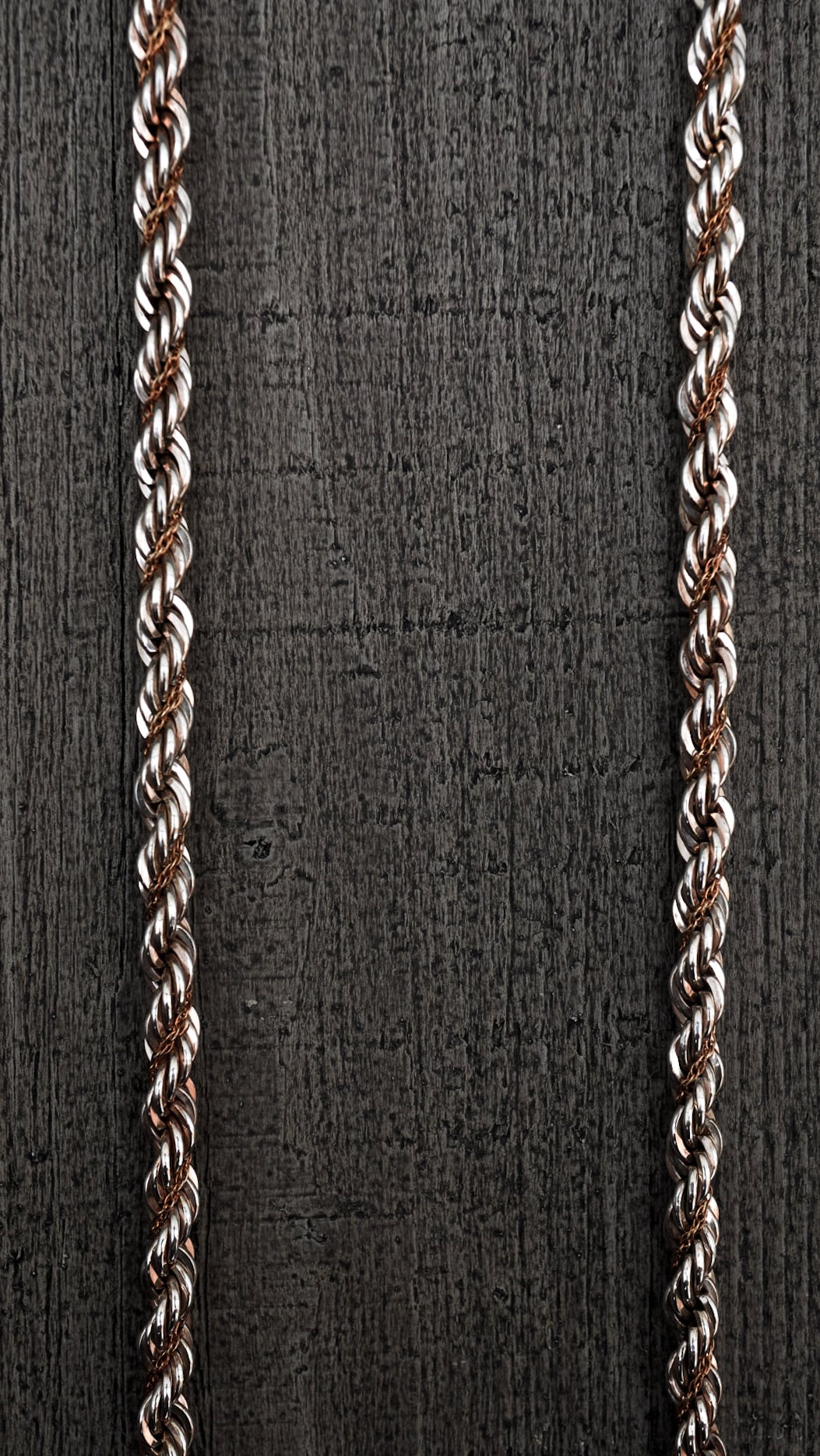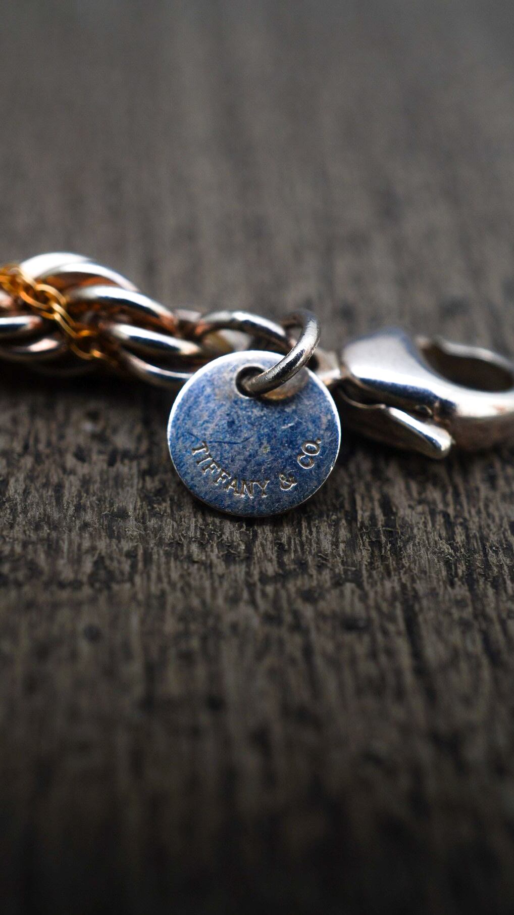 シルバーのツイストロープとゴールドチェーンが組み合わさったティファニー製のヴィンテージロングネックレス。
