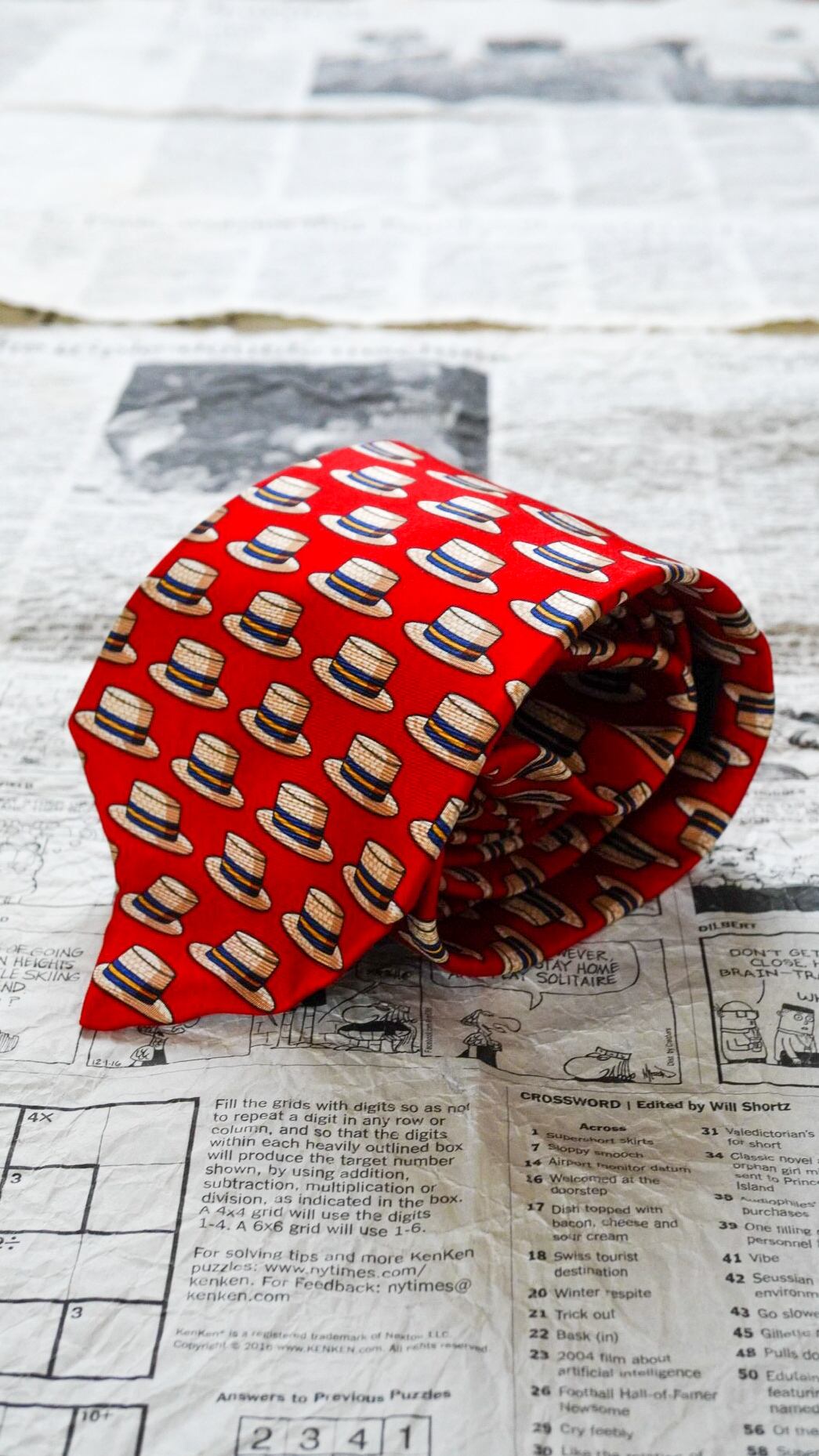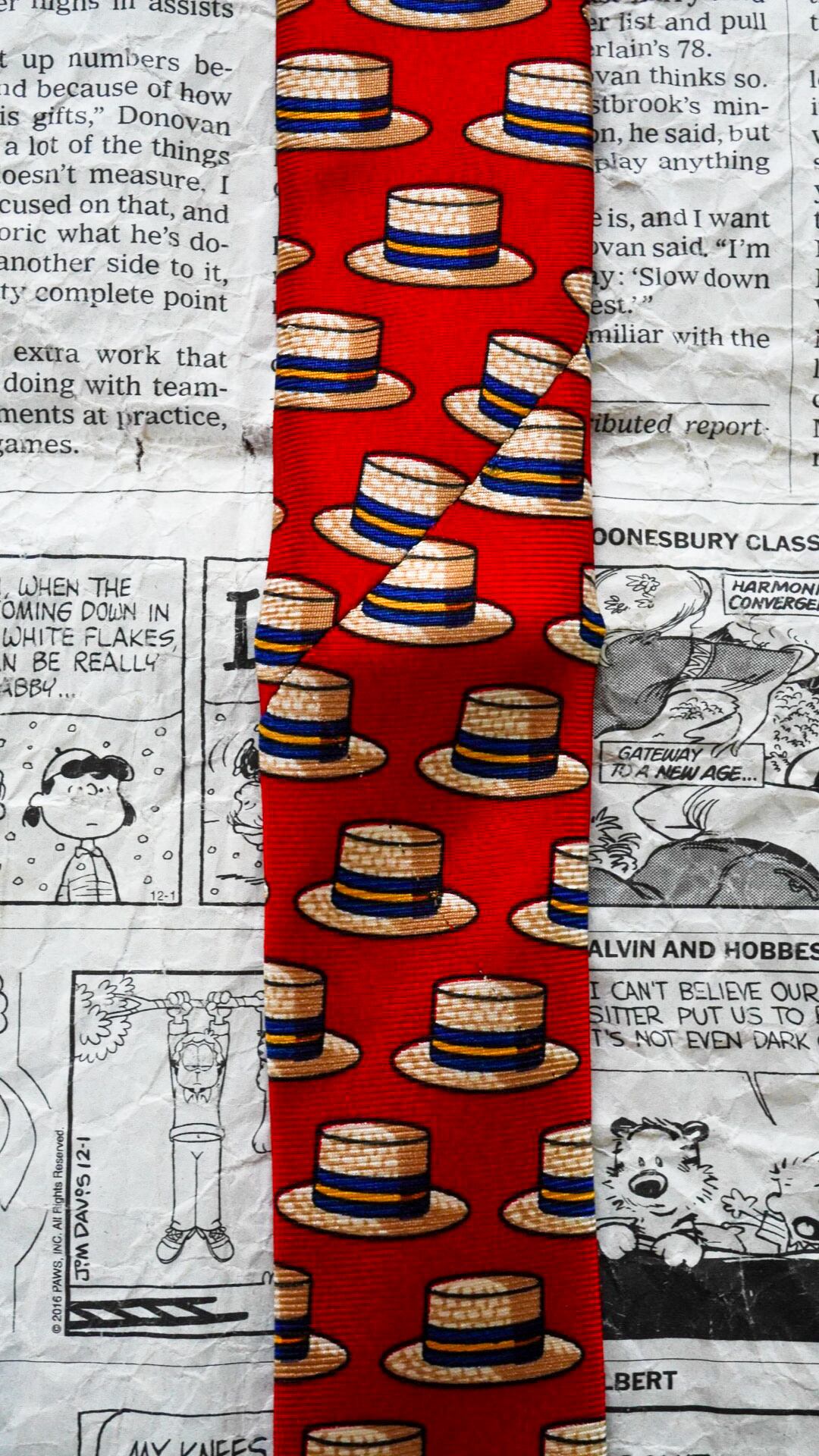 【1980-1990s】BROOKS BROTHERS ブルックスブラザーズ ストローハット柄 ネクタイ《帽子柄 ヴィンテージ》