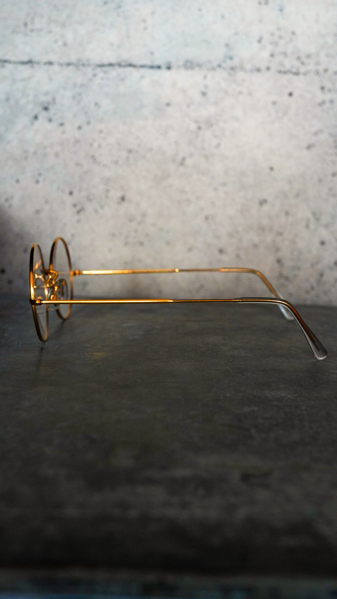 メッキやメタルにはない品のある佇まいの14金の金張りで構成された眼鏡フレームは、様々なシーンでお使い頂くことができるかと思います。