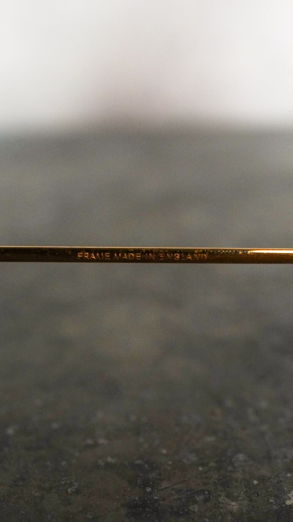 眼鏡フレーム内側には、「14KT RG」「FRAME MADE IN ENGLAND」「HILTON CLASSIC 2」の刻印が入ります。