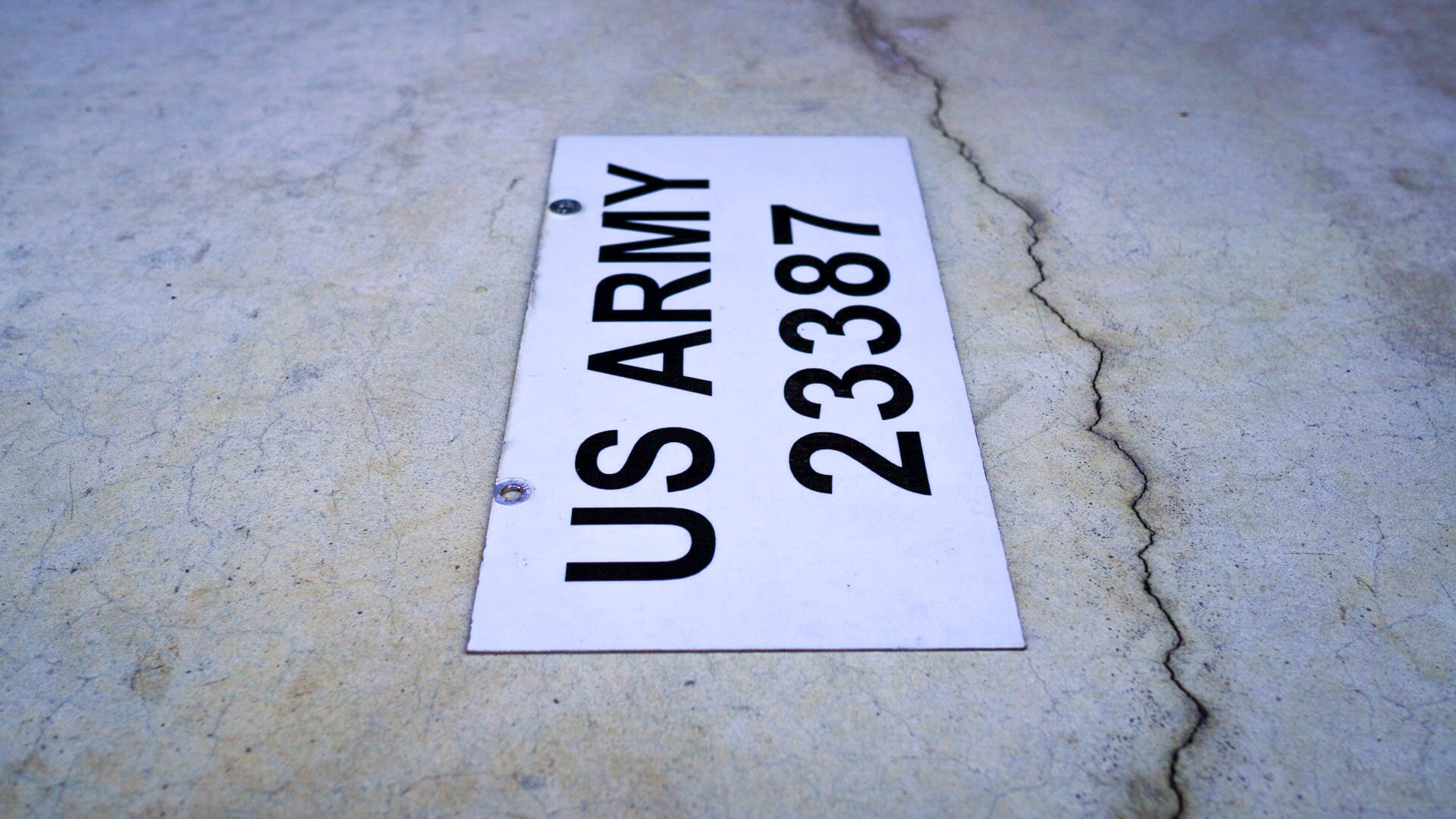 ホワイトベースのプレートにブラックフォントで「US ARMYY」「23387」の文字が入る力強い存在感が魅力です。