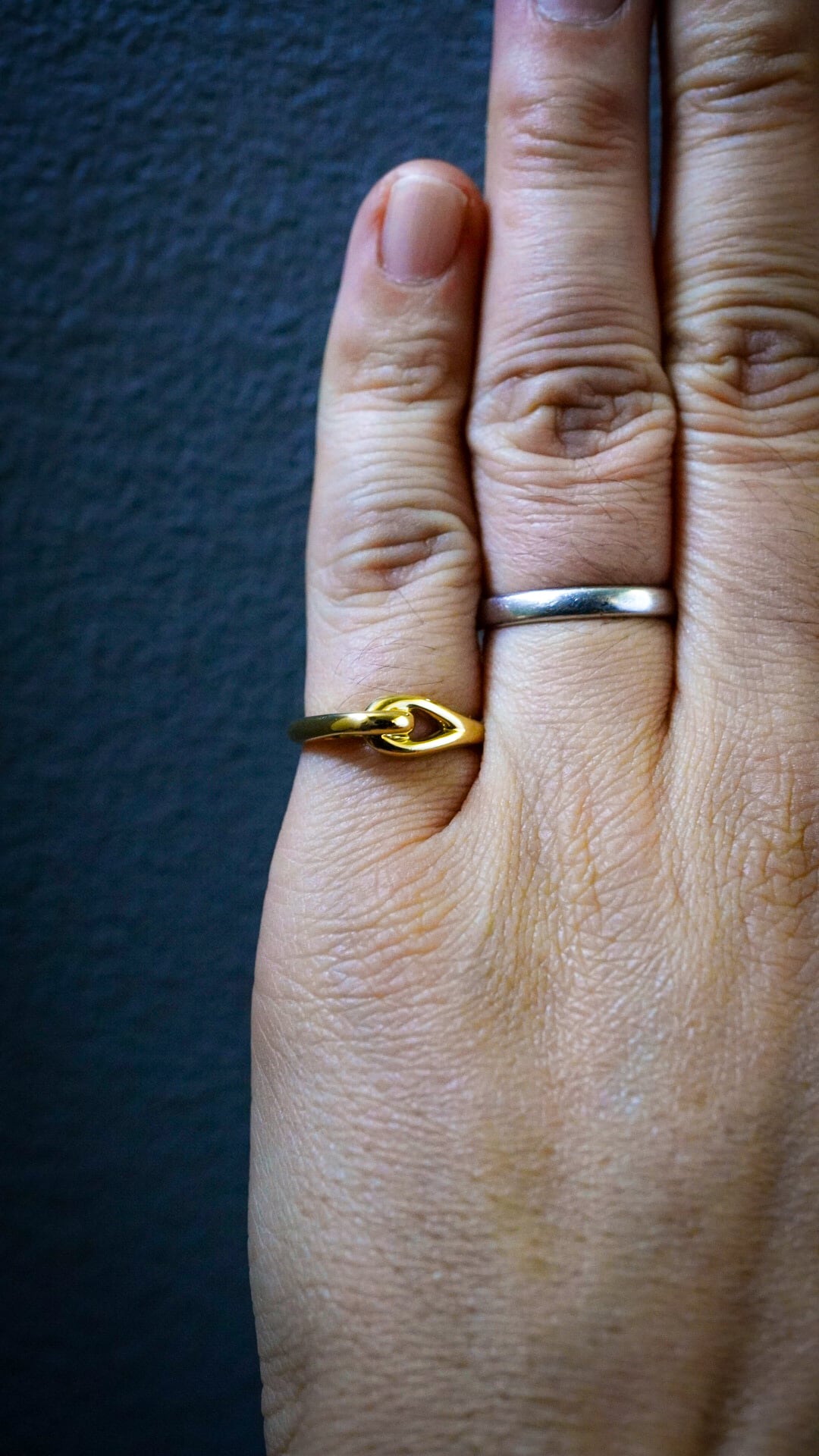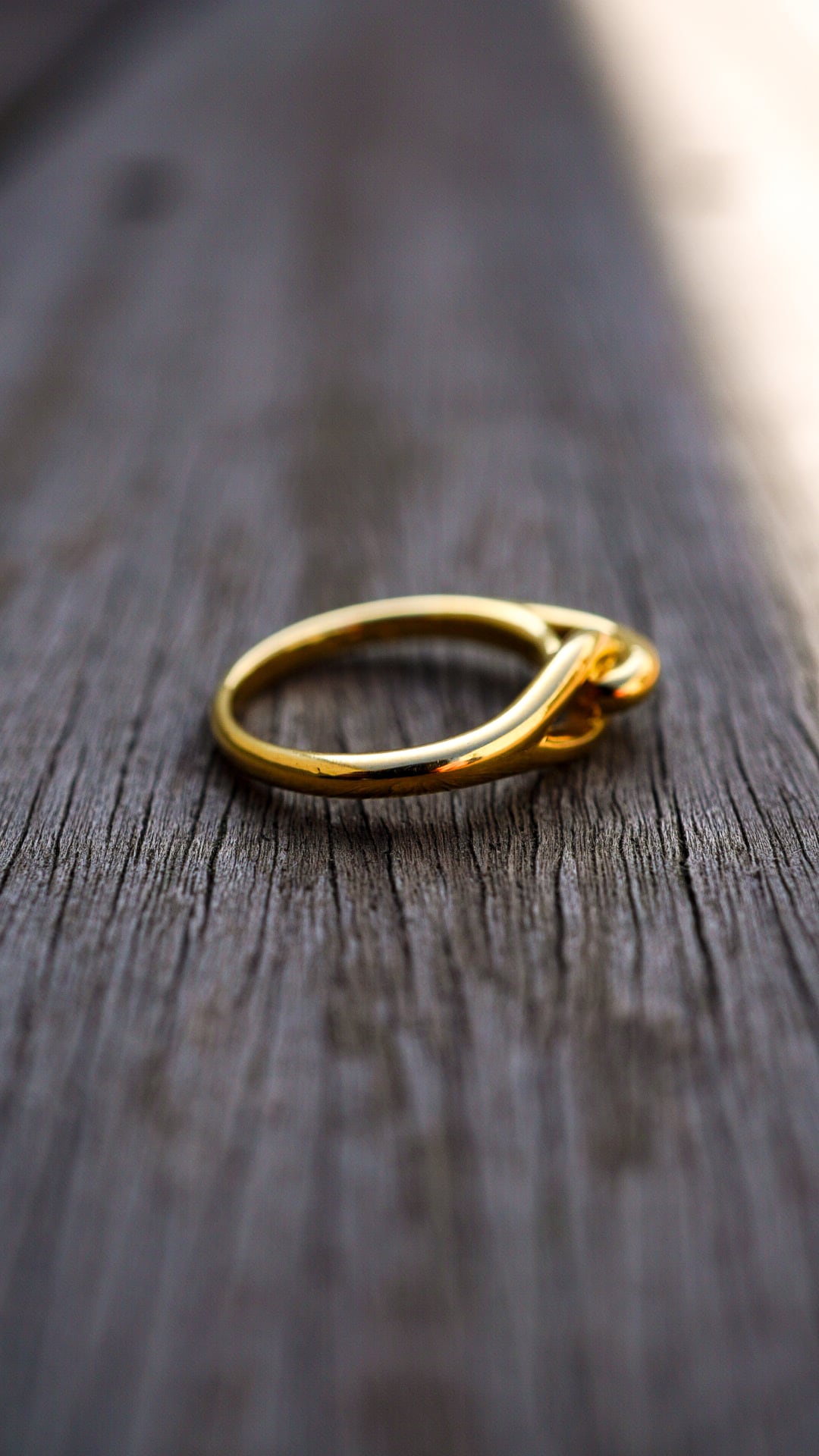 洗練されたシンプルなノットデザインが印象的なティファニー製のゴールドリング。