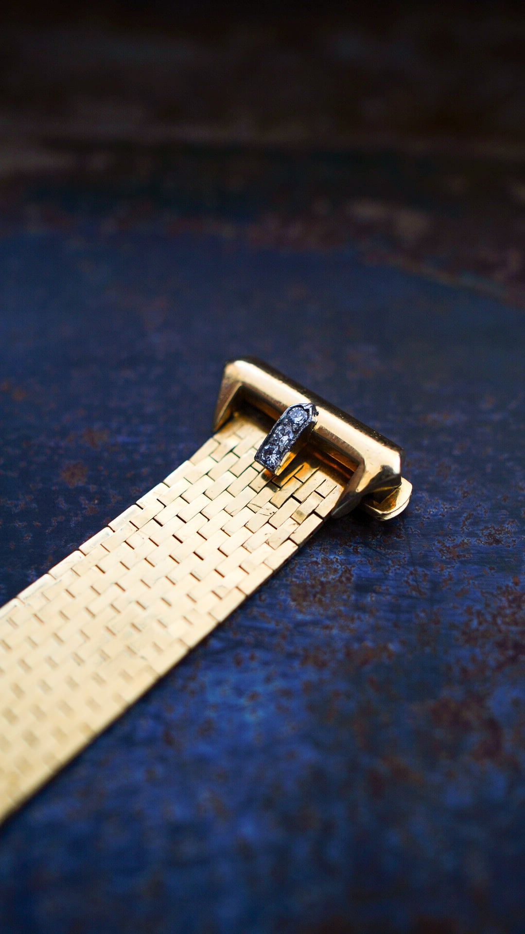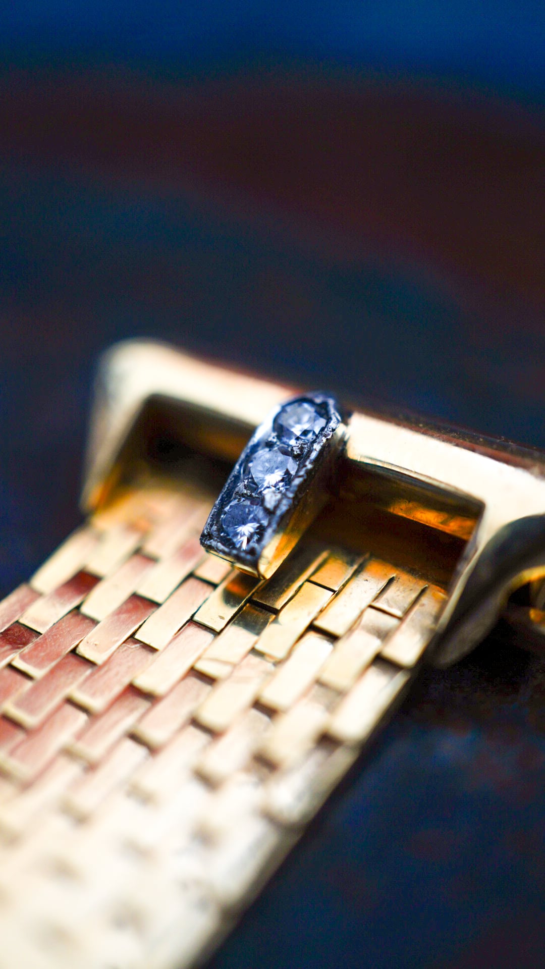 ベルトバックルのつく棒部分には3粒のダイヤモンドが配されており、着用頂いた際には良いアクセントになります。