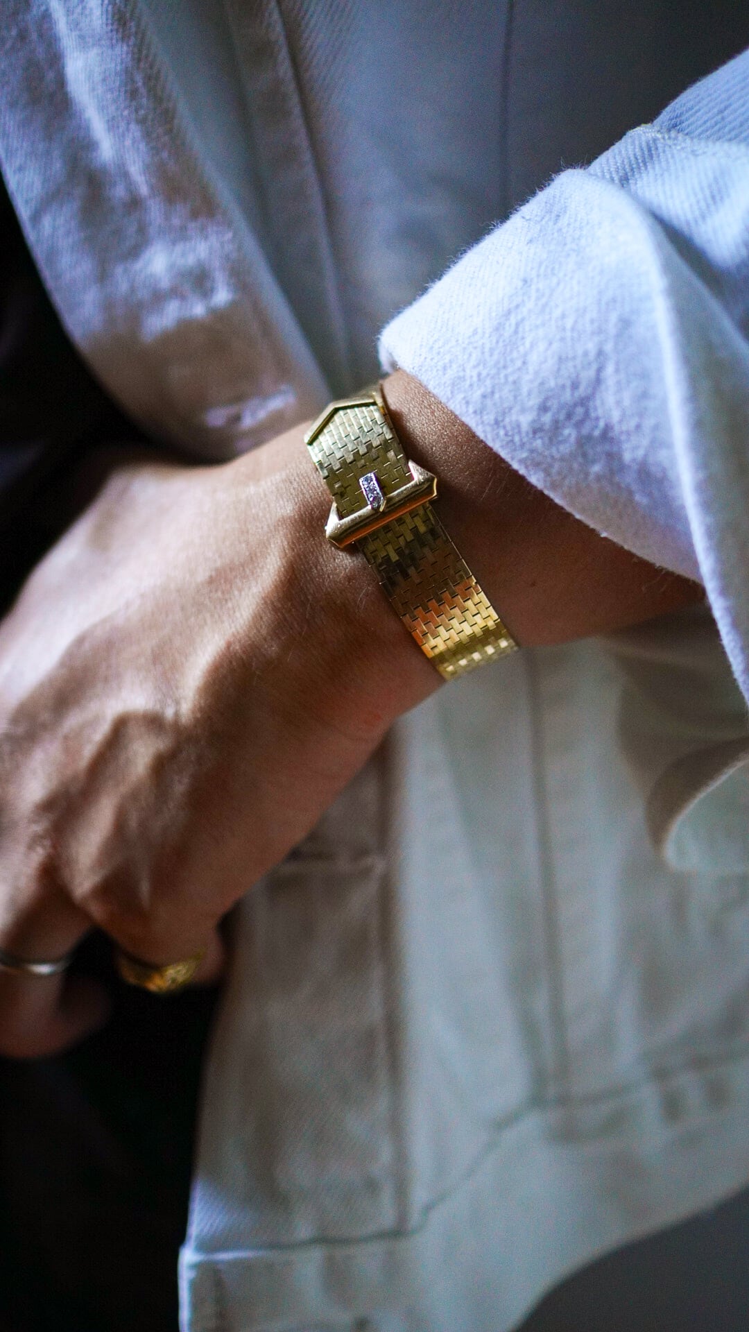 イエローゴールドで作られたティファニー製のヴィンテージメッシュブレスレット。