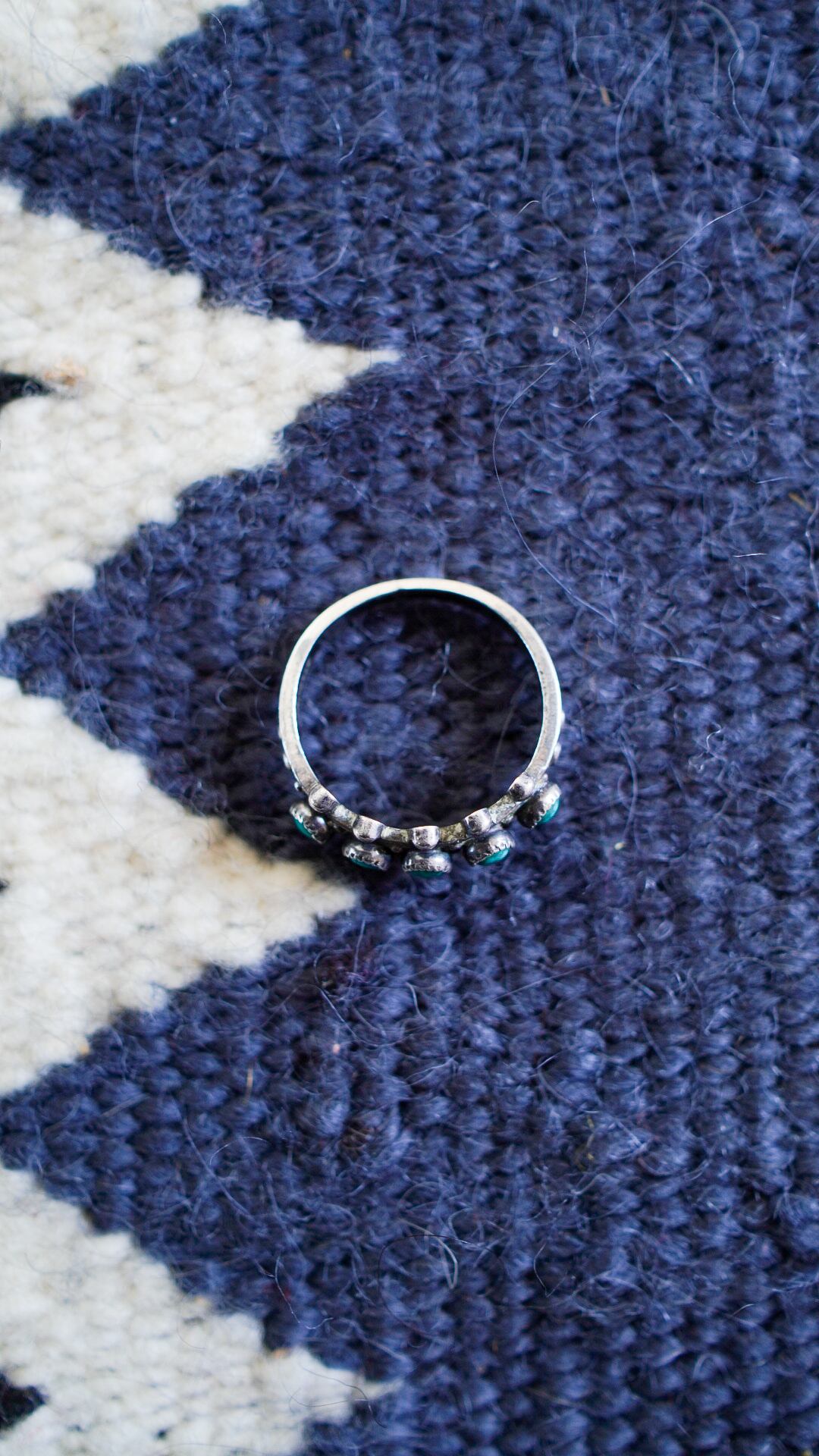 5連のターコイズが特徴的なリングで、流麗で奥行きのあるデザインがターコイズをより際立たせているかと思います。